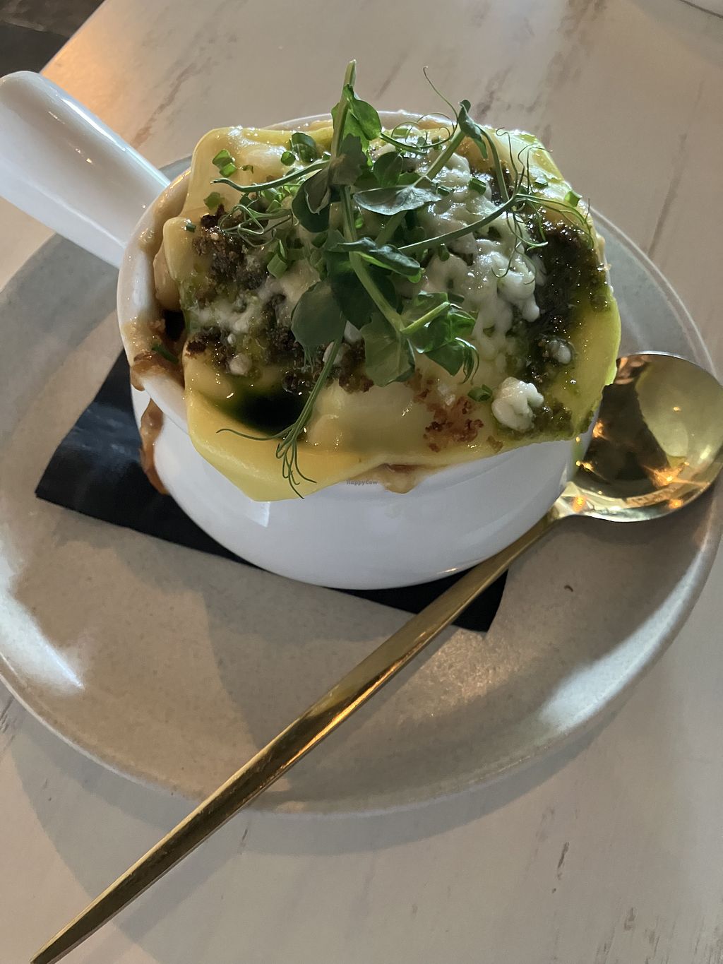 Visited this place and ordered the French Onion Mac N ‘Cheese’. I had never had anything like it and thought it was delicious. I also had the Golden Latte afterwards and enjoyed that. I will return the next time I am in the area.