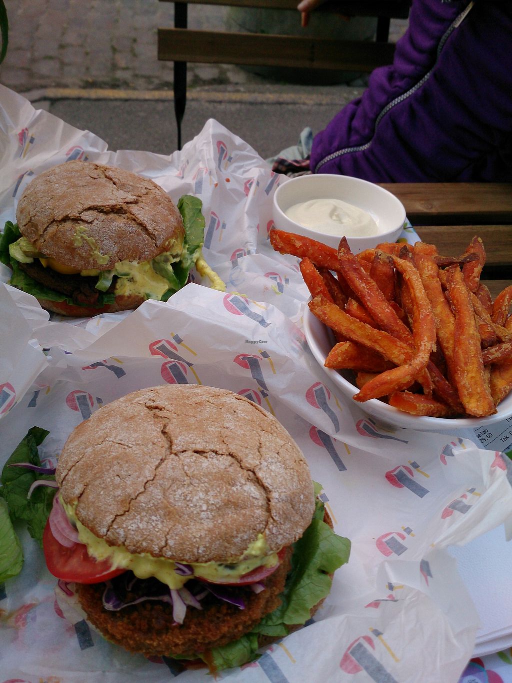 burgers, sweet potato fries and mayo