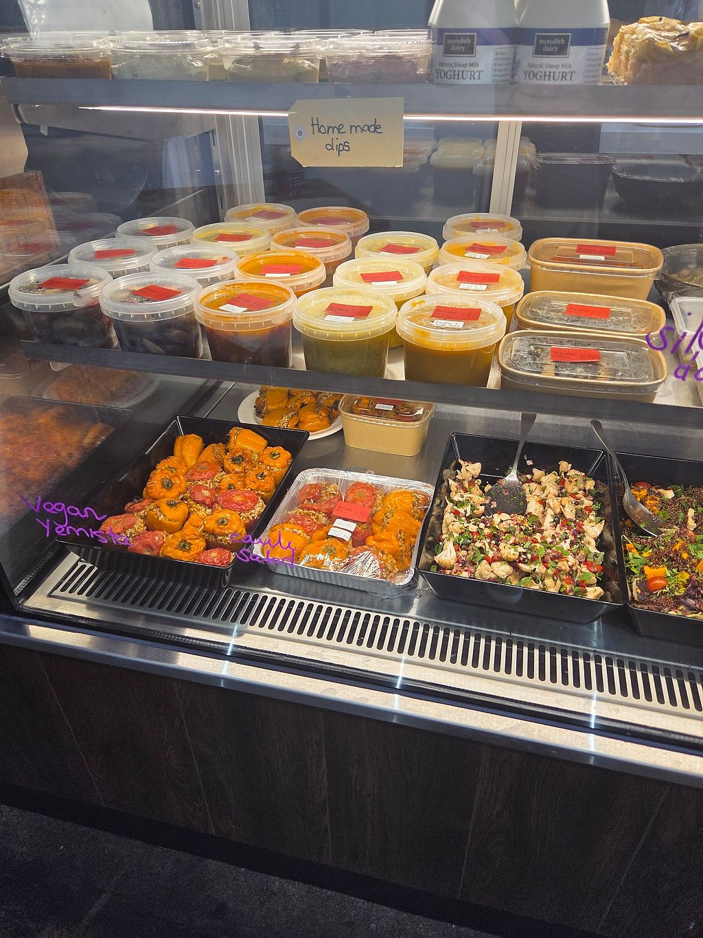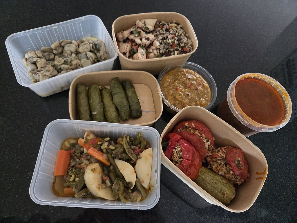 Great salads, stuffed capsicums, dolmades and other vegan options. Friendly owner who took the time to highlight options.