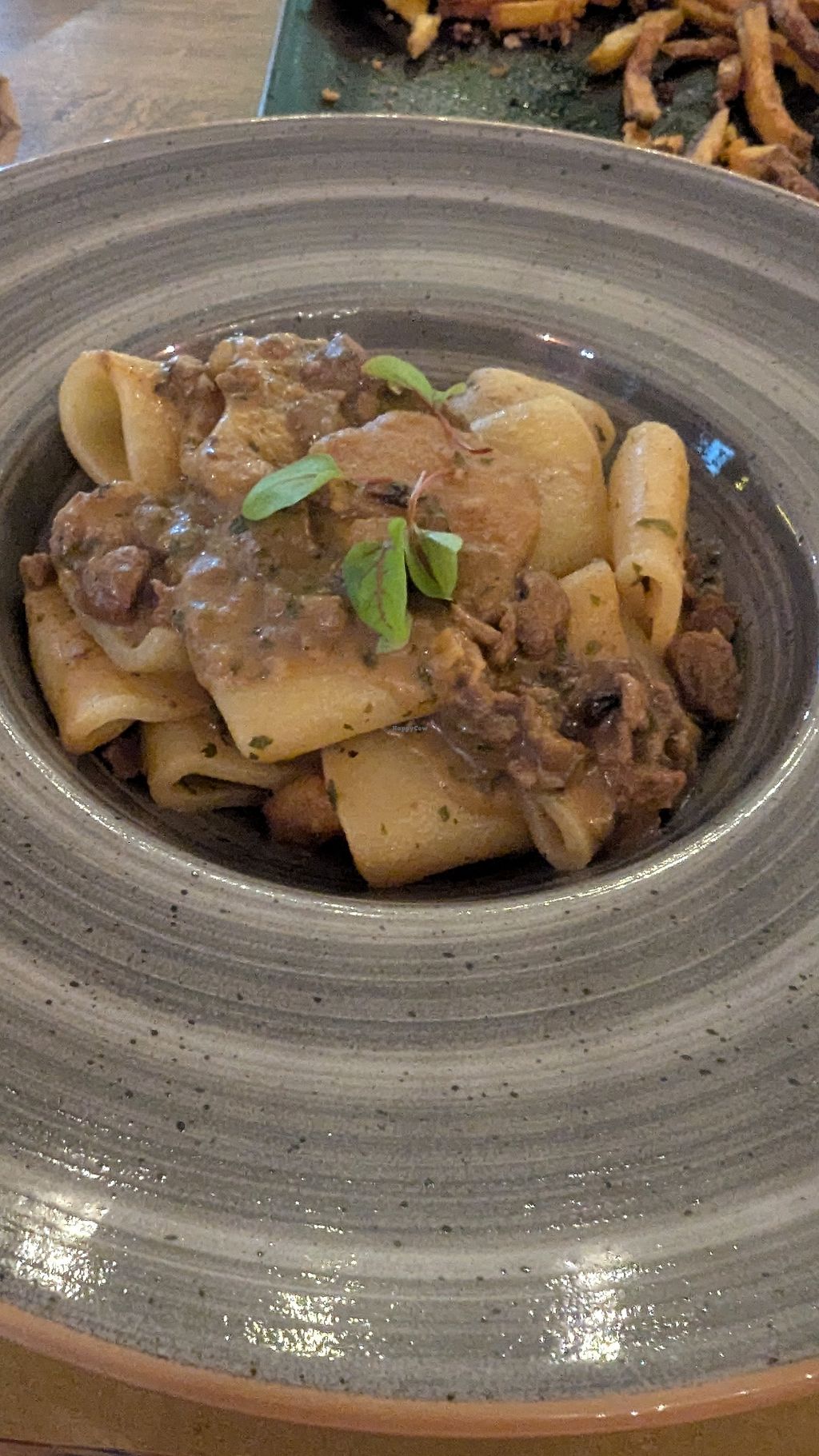 Pistachio pasta was excellent and nice to have a vegan tiramisu which was particularly large. Also starter of sourdough, vegan ricotta and prickly pear chutney was complex and tasty.