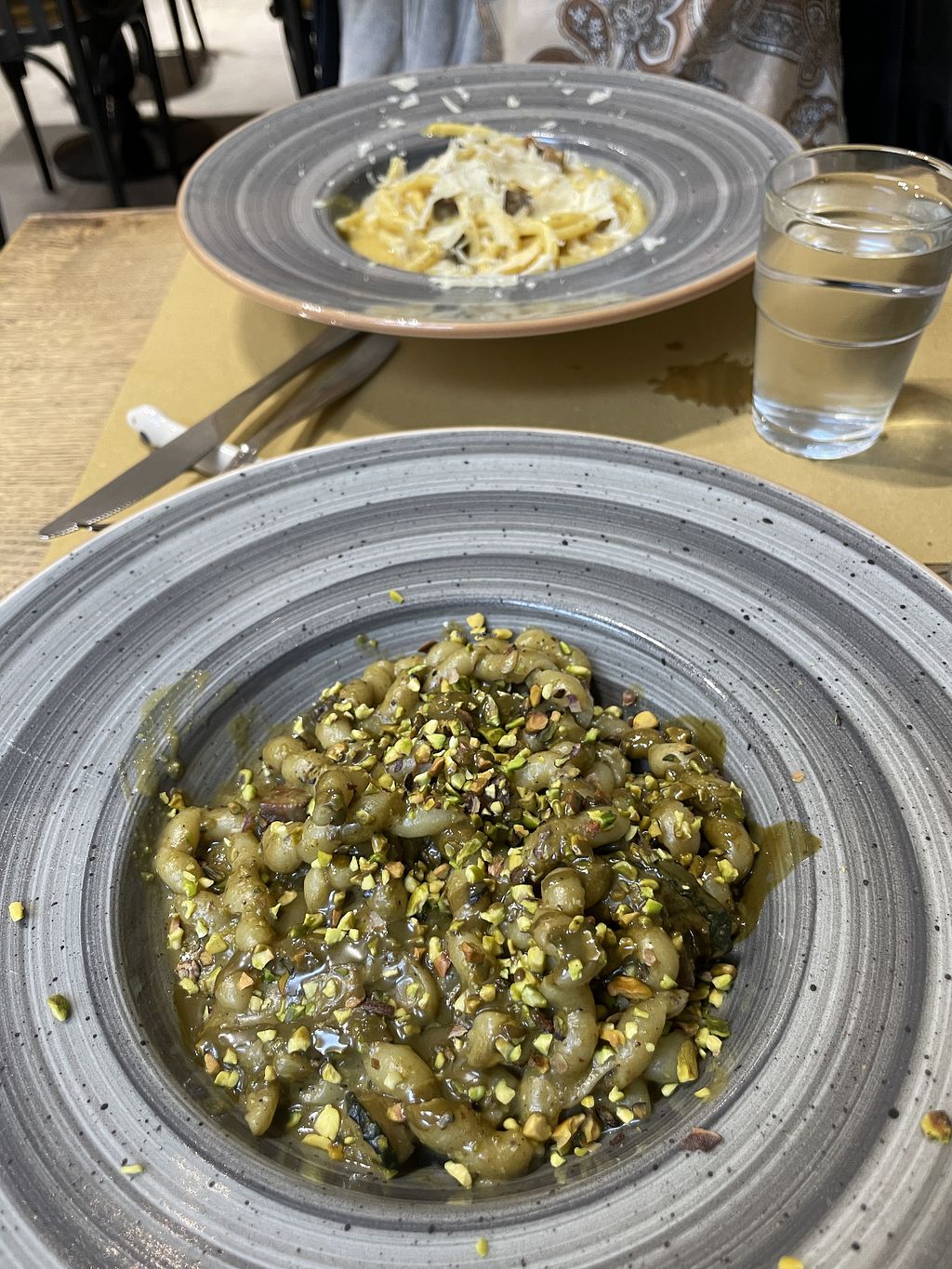 We had pistachio pasta, the ragu/sicilian style pasta, the mixed starter plate and some cocktails. I loved all of it except the starters since almost all of it was fried and just too much for us. I'd recommend getting a cake as dessert instead!