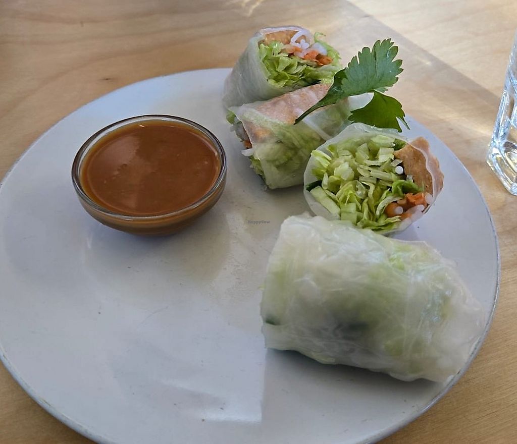 Les plats étaient bons. En entree nois avons partagé des petits rouleau de printemps. J'ai commandé le pad thai et mon mari le riz aux légumes et tofu.