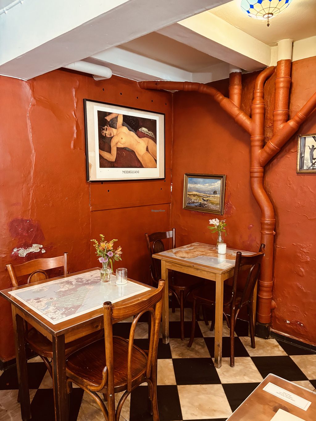 Located in central Latin quarter with view of the old neighborhood - same owner of the upstairs vegan cafe Urten. Dishes include Manila tofu, lasagne, nut roast, fried rice, tortilla and burritos. Reported fully vegan August 2023. Open Mon-Sat 12:00-22:00. Closed Sun. Kitchen closes 9pm.