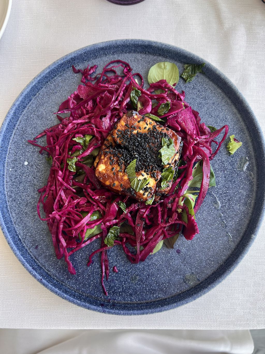 Nice rooftop restaurant with a view (sea is not so close but visible!). Menu offers 3 vegan options with main ingredients tofu, tempeh or pasta. I tried tempeh plate: very good. Take note of this place if you are vegan and around Ostuni.