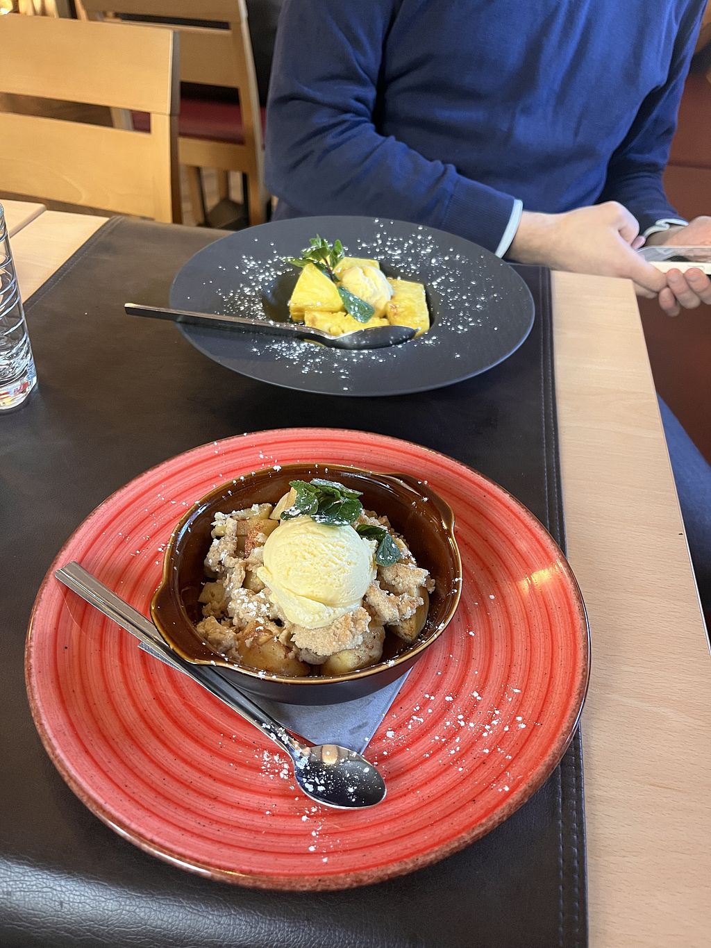 Warm berry crumble with homemade vegan ice cream