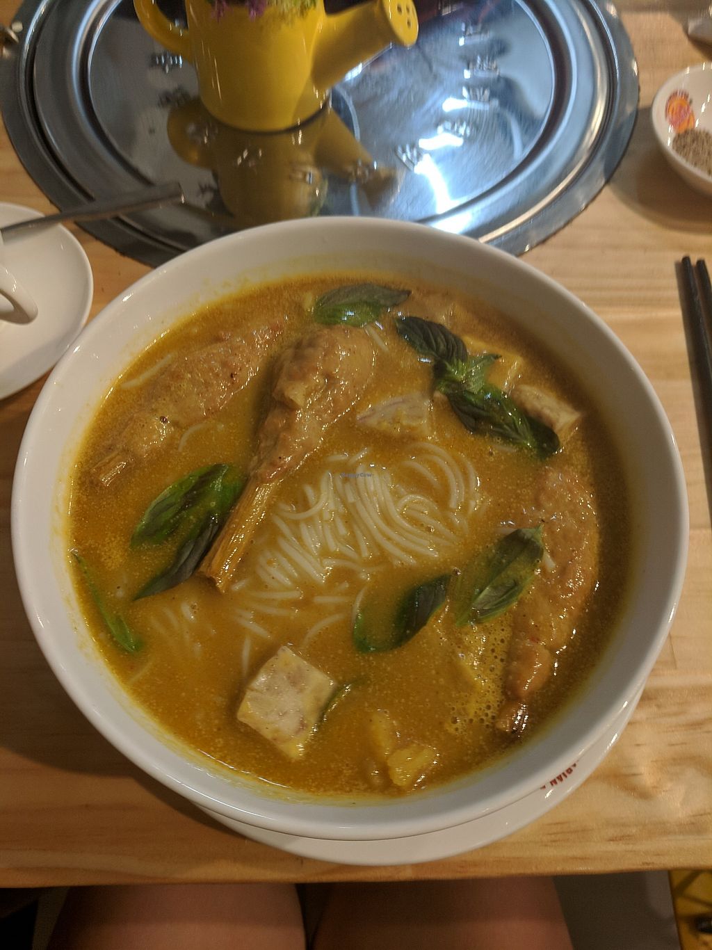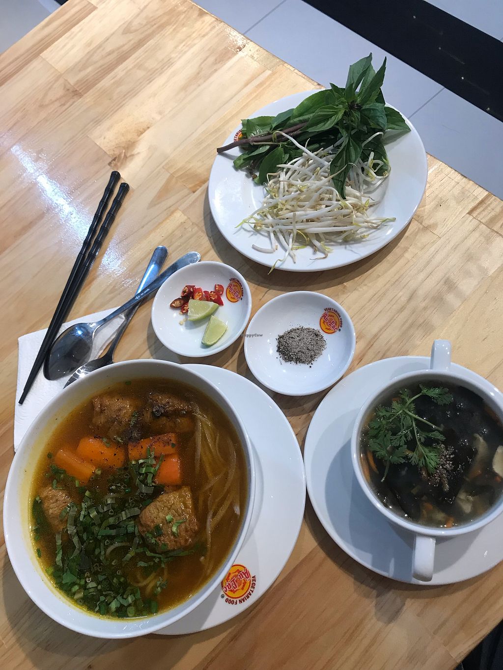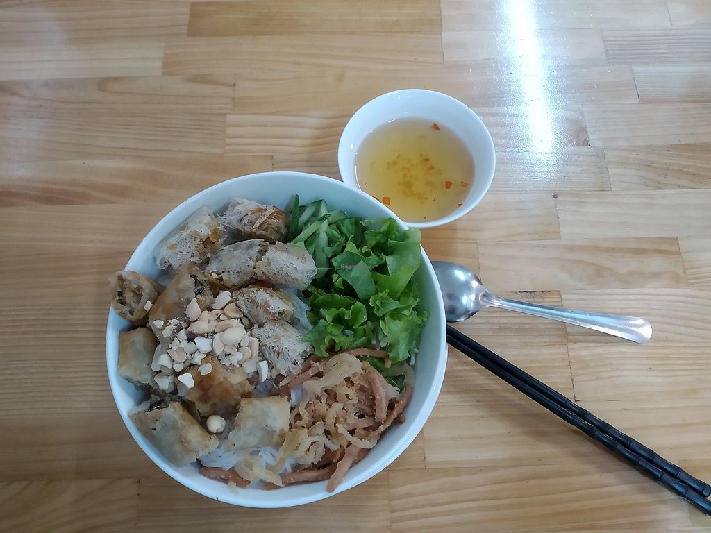 Went here for my first meal in Vietnam and had the Chicken Banh Mi and Papaya Salad. The Banh Mi was insane. The mock chicken and pate was amazing, and the whole collection of flavours were incredible. The Papaya salad was also very good, but the Banh Mi took it for me!