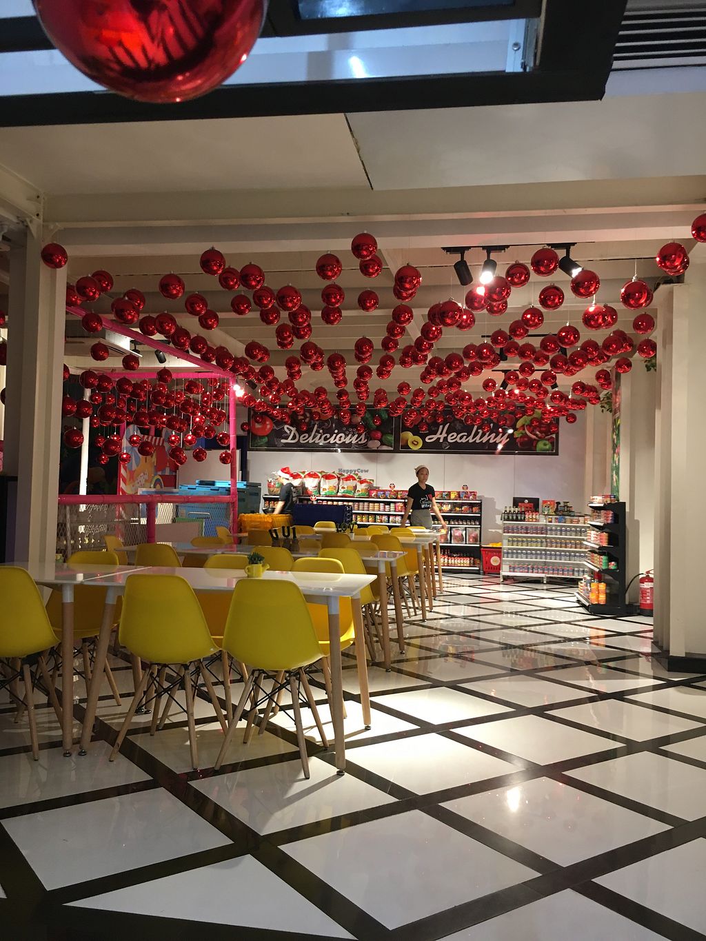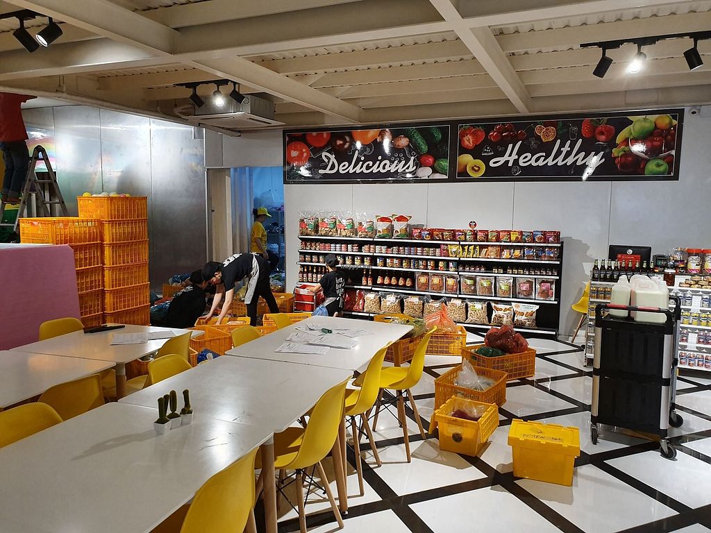 Vegan coffee shop, supermarket market, and kids play area spanning across 4 floors in one building. Its restaurant closed April 2022. Reported closed October 2022.