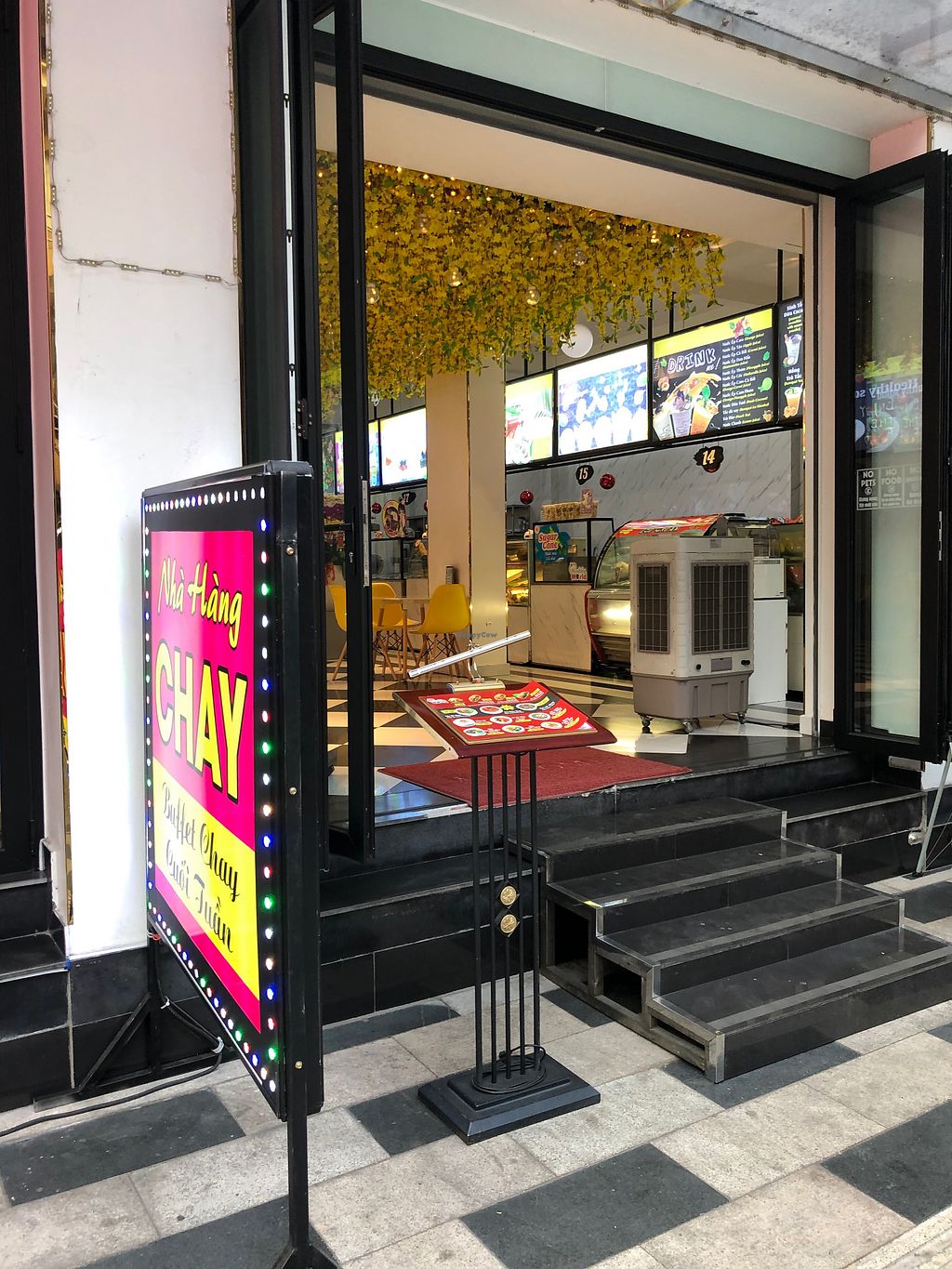 Read moreFake flowers, funny ceiling, nicely put together tables... even the beers are fake, I mean non-alcoholic...There's a shop downstairs selling frozen mock meat...we saw a fish in a package that looked almost like real fish! Amongst tons of onther fake meat.... make sure you real the labels.... it's all made of soy protein, but they add e-colorant and fake things, so make sure you're ok with it first.... not that healthy of course, but every now and then, as a treat, mock meat is ok... just like tofu or quorn... in a way...