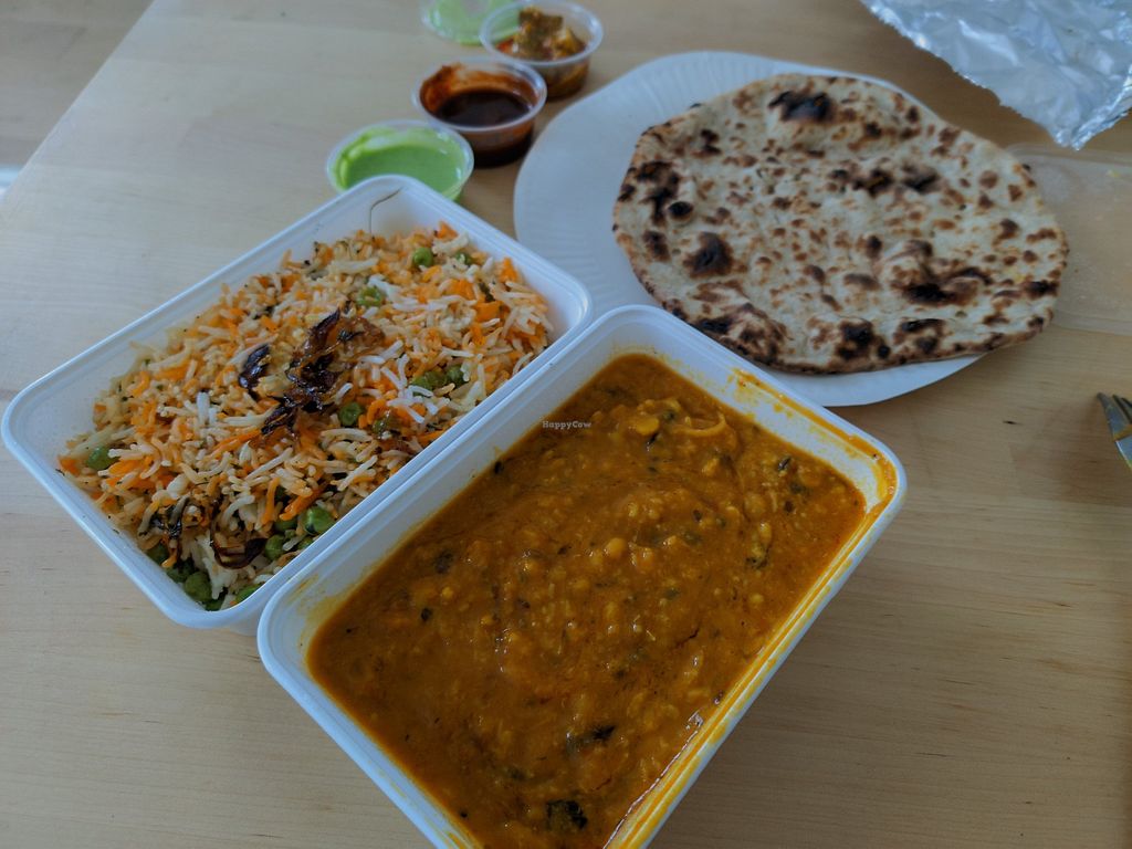 Serves meat, vegan options available. Indian restaurant, offers typical vegetables dishes, Daal