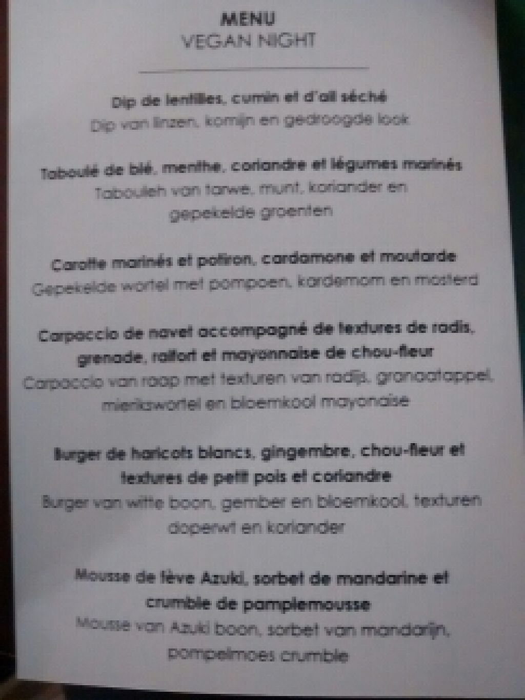 monthly vegan night menu
