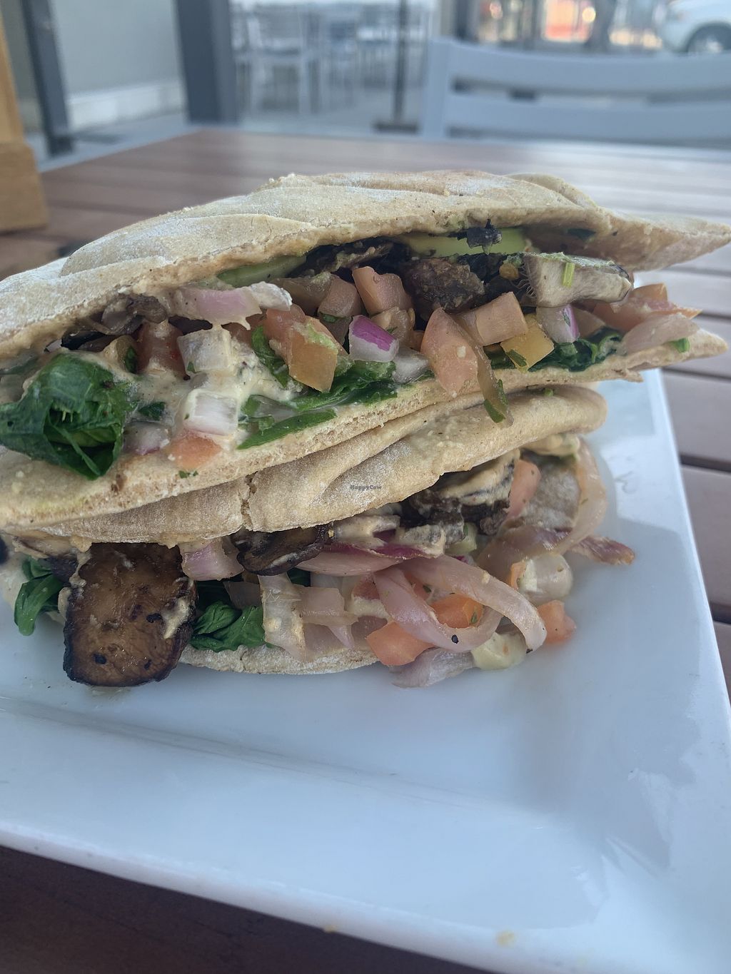 Clearly labeled (V) menu. Several lemonade flavors and fast service. It’s an order at the “bar” type place but has a patio that is quieter. Several vegan bowls, one melt, smoothies, and ice cream that doesn’t taste like coconut.