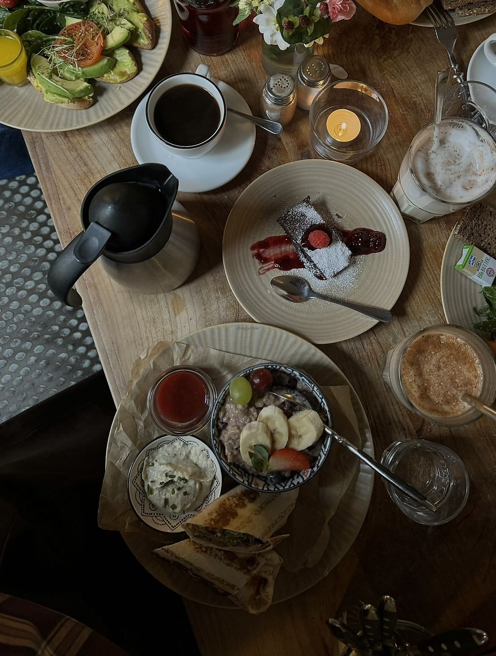 its really dark in there and ths interior is chaotic an worn off. there are a few vegan options - i went for the dish "go vegan". the wrap was really delicious, the porridge was nothing special and not that great. staff was amazing!