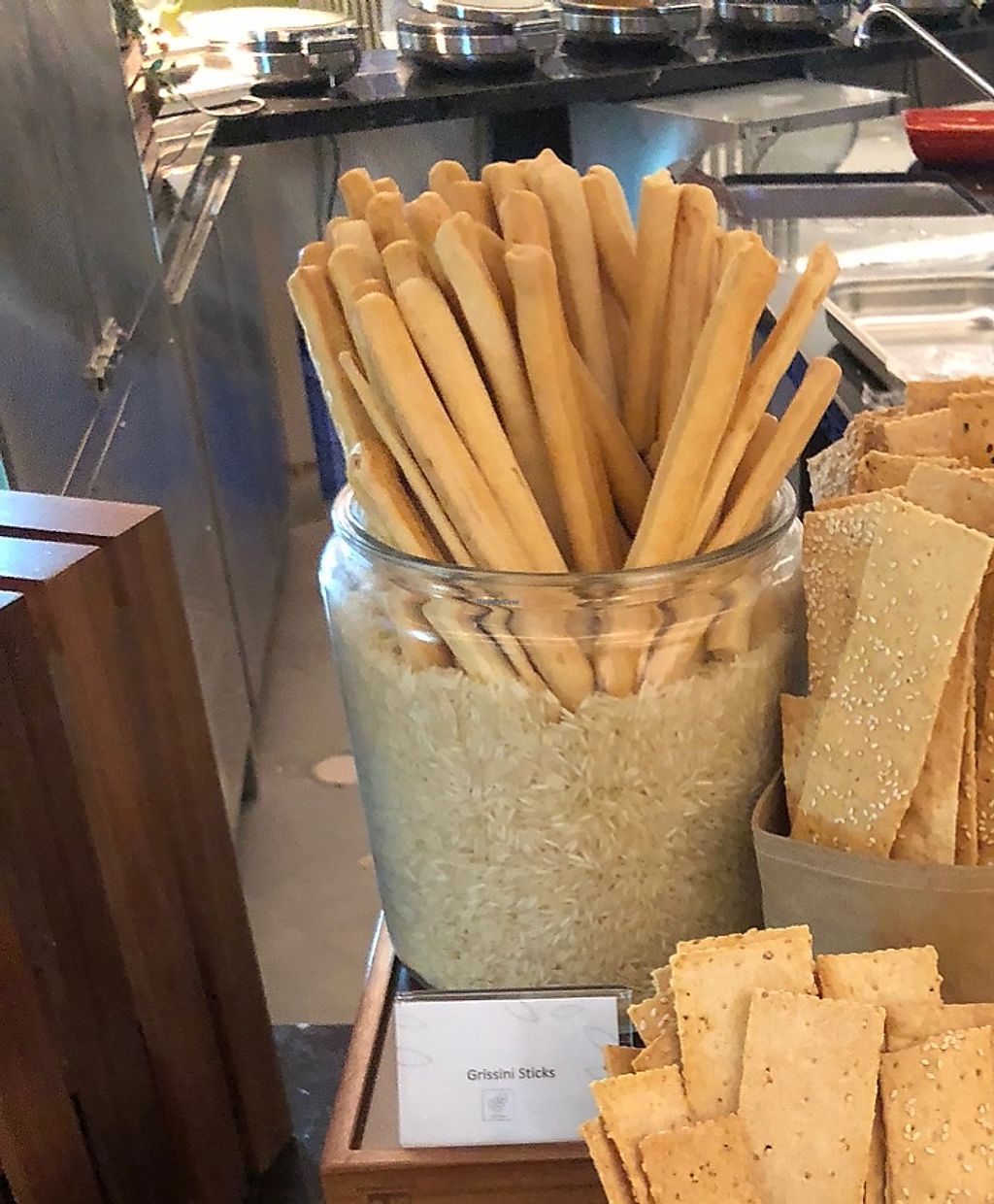 This lounge displays allergens on all items which is great. However, at the time of my visit, vegan items included fruits, raw vegetables, hummus, breads, basmati rice and ratatouille. Unless you have free lounge access, do not waste your money here.