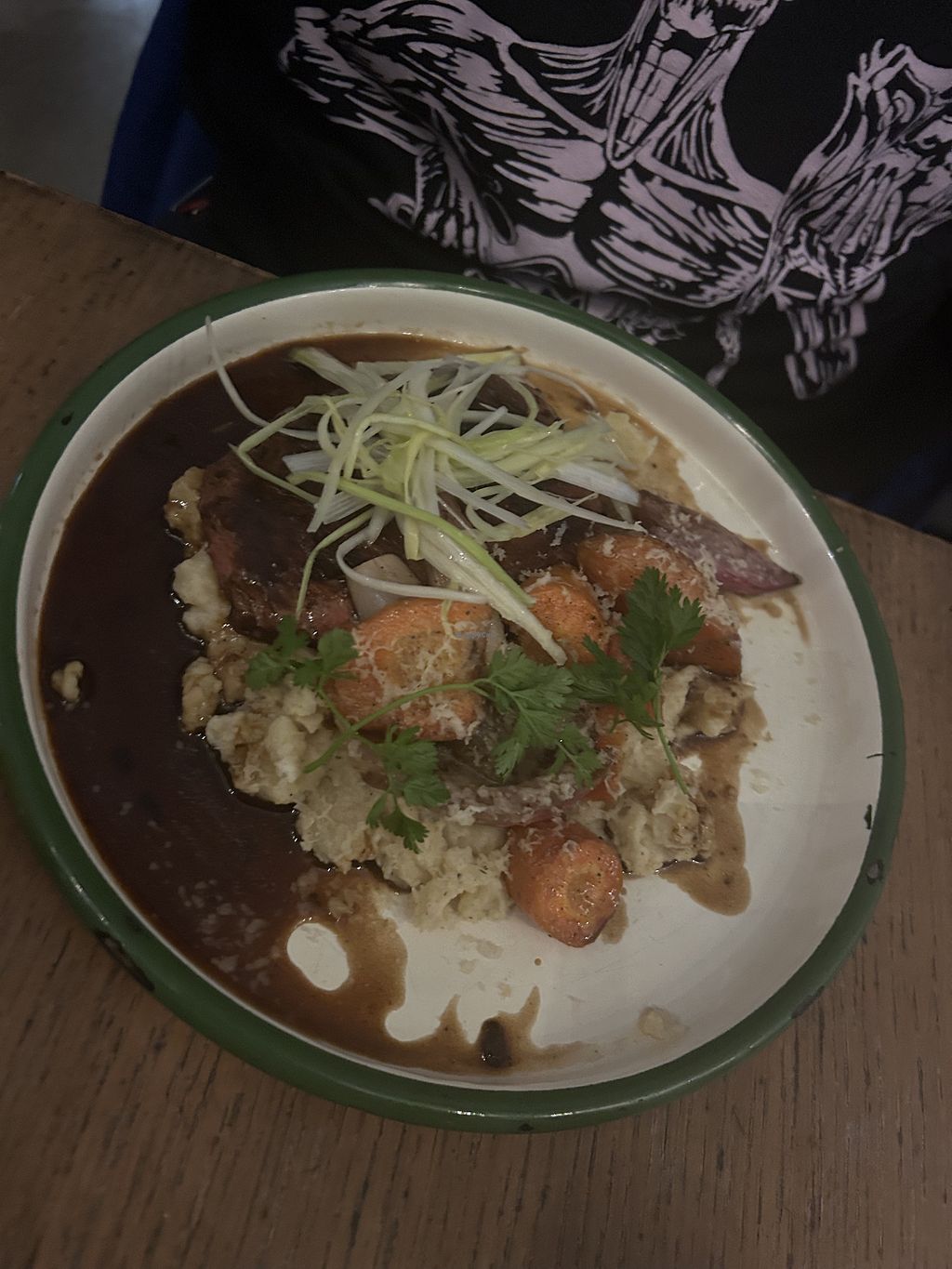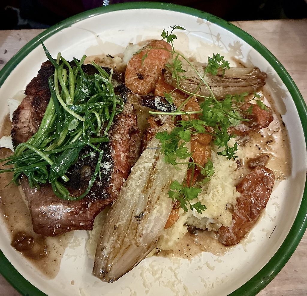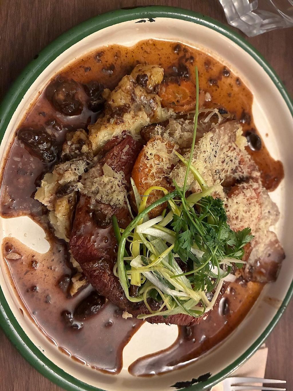 Cons: More sauce and more veg with the "steak" please, Ice cream or cream with that yummy cake