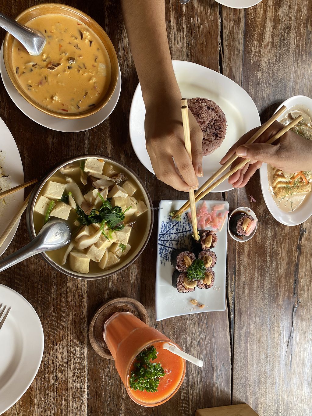 top: thai green tofu. bottom left: jungle curry. bottom right: steamed…
