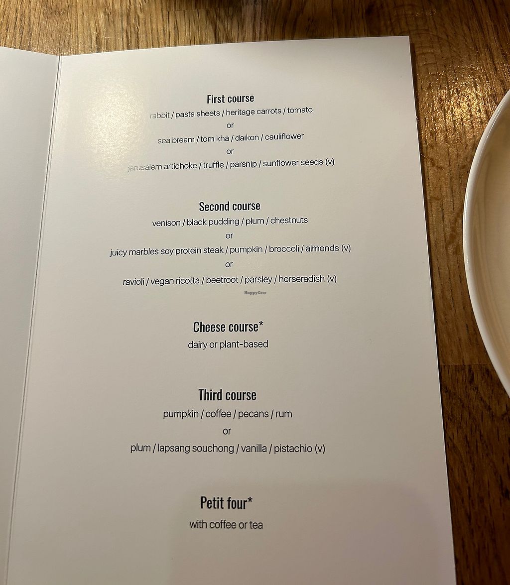 Had a wonderful birthday treat meal here. Seasonal menu and all veggie options are vegan. Cheese course was absolutely amazing. So was the matching wine. Staff were very knowledgeable about veganism and checking the wine for me. A must visit!