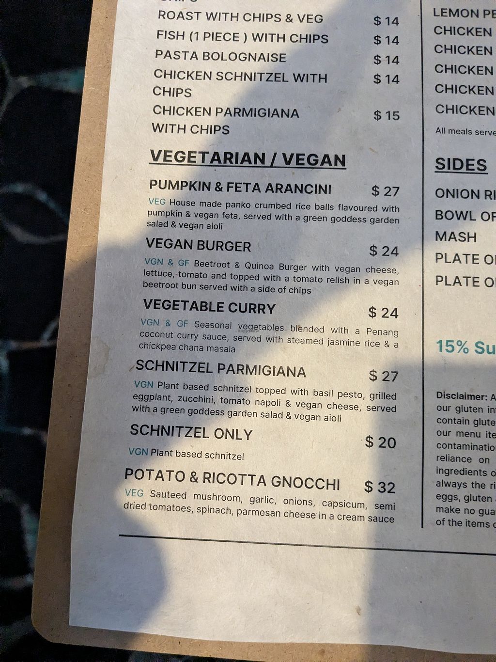 We had the Vegan Chicken Schnitzel that was oozing with goodness and well priced. Vegan Dessert options too.