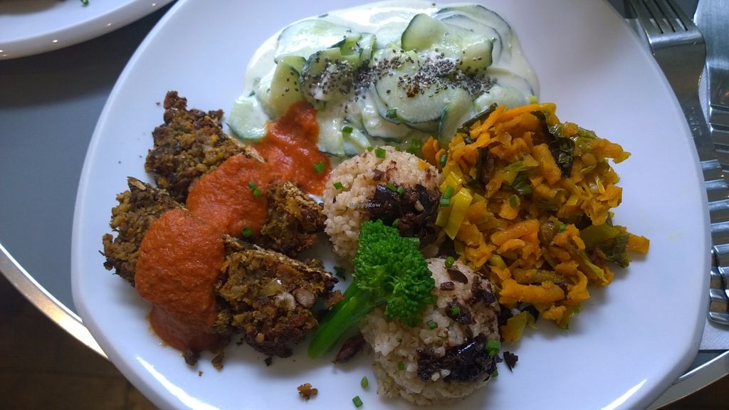 Pros: Good vegan lunch option., Calm, nice atmosphere.