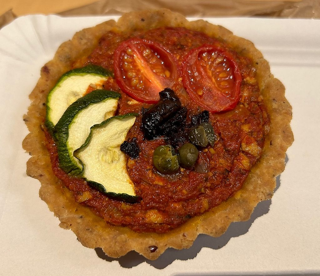 I had a small and very pretty tomato tart as well as a tiramisu. The tart was hearty and delicious, but the tiramisu was sour (not bad, but a little strange). I wish they have more options in the shop such as vegan cheeses and cold cuts. The grocery items are things that you can buy at any supermarket.