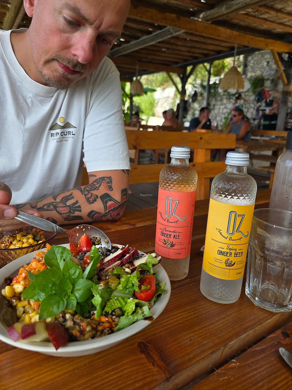Lacto Ovo Mediterranean Beer/Wine Greek Non-veg Serves meat, vegan options available. Restaurant and bar offering vegan choices including fava bean hummus, falafel and quinoa salad. Hours are subject to season - check ahead. More