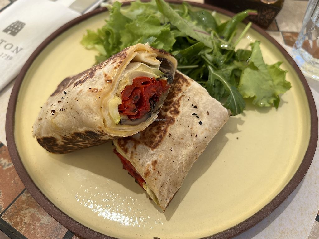 Read moreWent back at noon and there were umbrellas thank goodness. You couldn’t get the cauliflower steak until 4pm sadly. I ordered the vegan tortilla with fava beans and roast veg but got served the chicken one. They corrected it and apologised. I couldn’t detect any fava which was a shame as that would add protein and nutrients. Amazingly beautiful place though. Shame there aren’t so many vegan options and you can only get them at certain times.