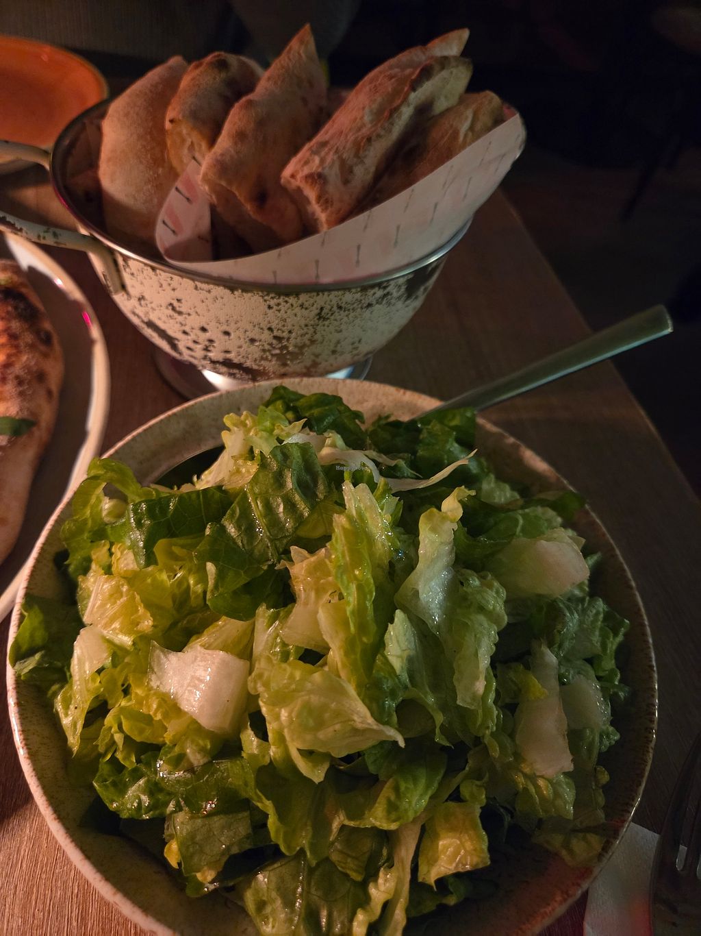 Nice restaurant with a small number of vegan side dishes (see photo), but they immediately offered to make a vegan pizza (with pepper and courgette sauce instead of cheese) when I asked for one.