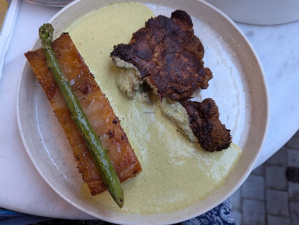 French toast sweet with vegan bacon and chantilly ; cheesecake-baklava
