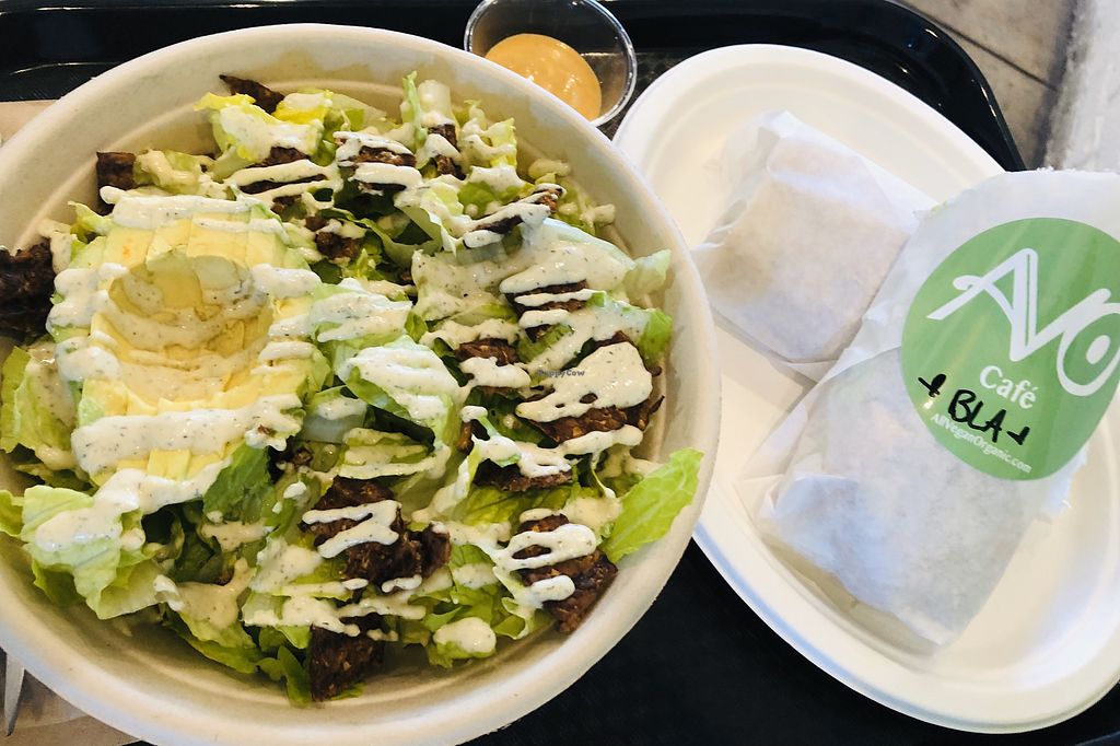 BLA - tempeh bäcon, lettuce, spinach & avocado grain bowl with plant d…