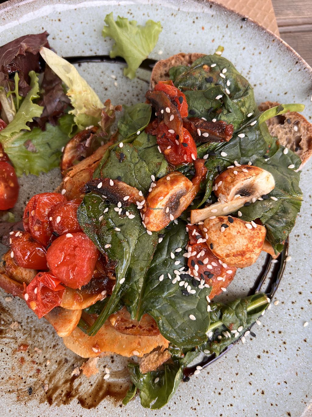 Read moreWe’ve had “Veganlicious” (fried seitan with mushrooms, spinach and tomatoes on a toast) which was quite delicious, and a vegan bagel which was okay but not super exciting. It was served with a side of sweet potato chips.