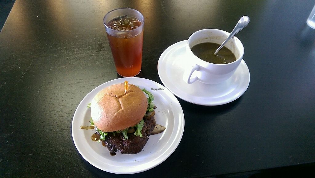 Jerked Portobello Sandwich with Lentil Soup