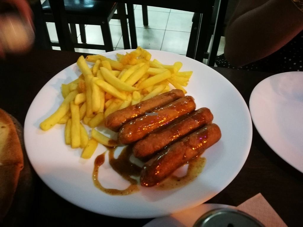 Mildly spicy vegan hotdogs with french fries