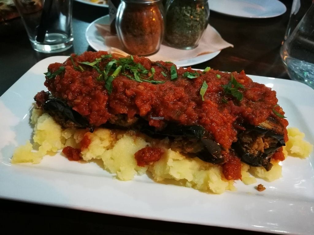 Mussaca (eggplants filled with "meat") with mashed potatoes