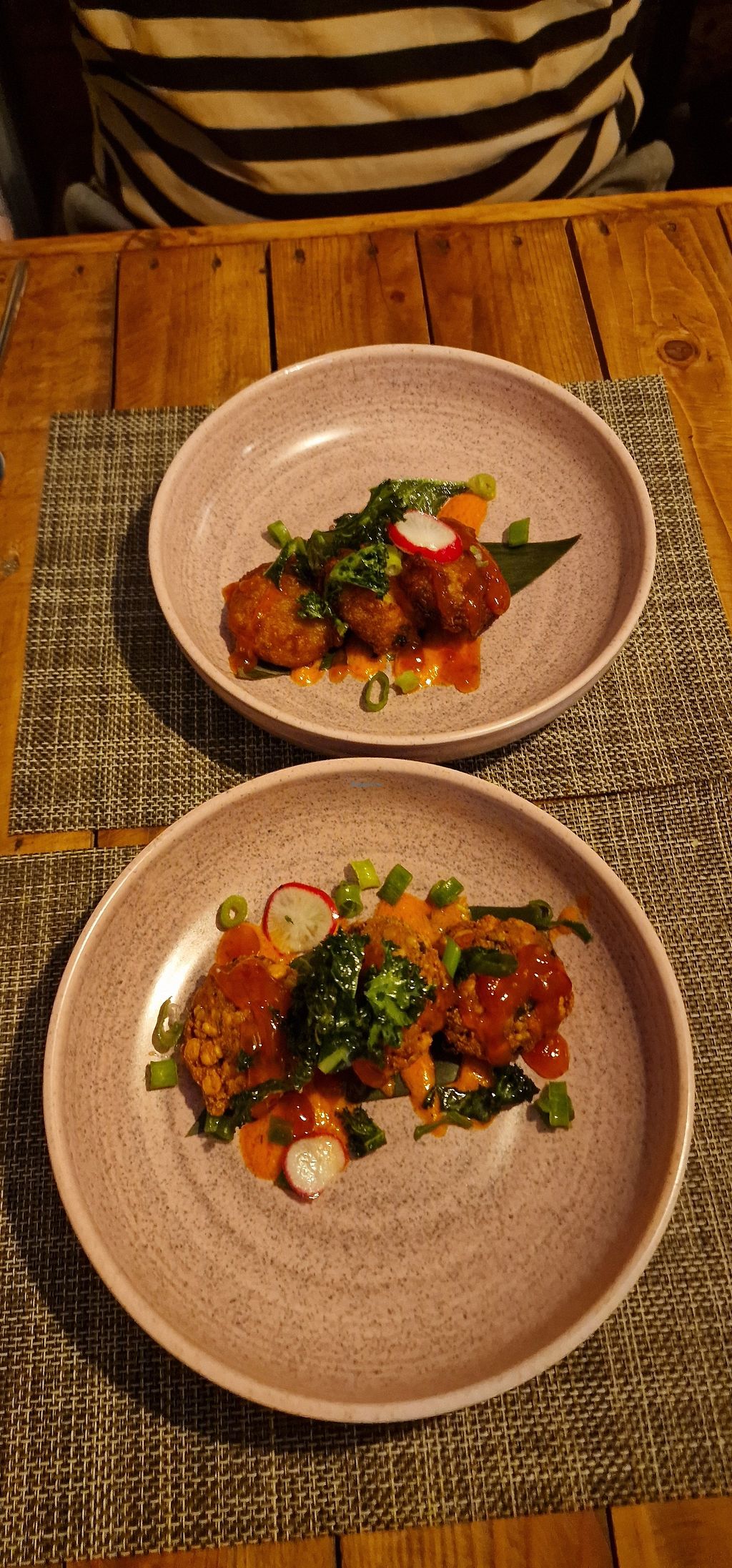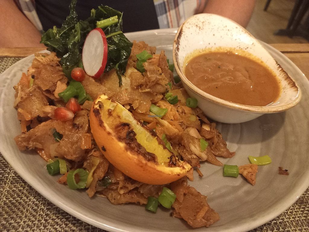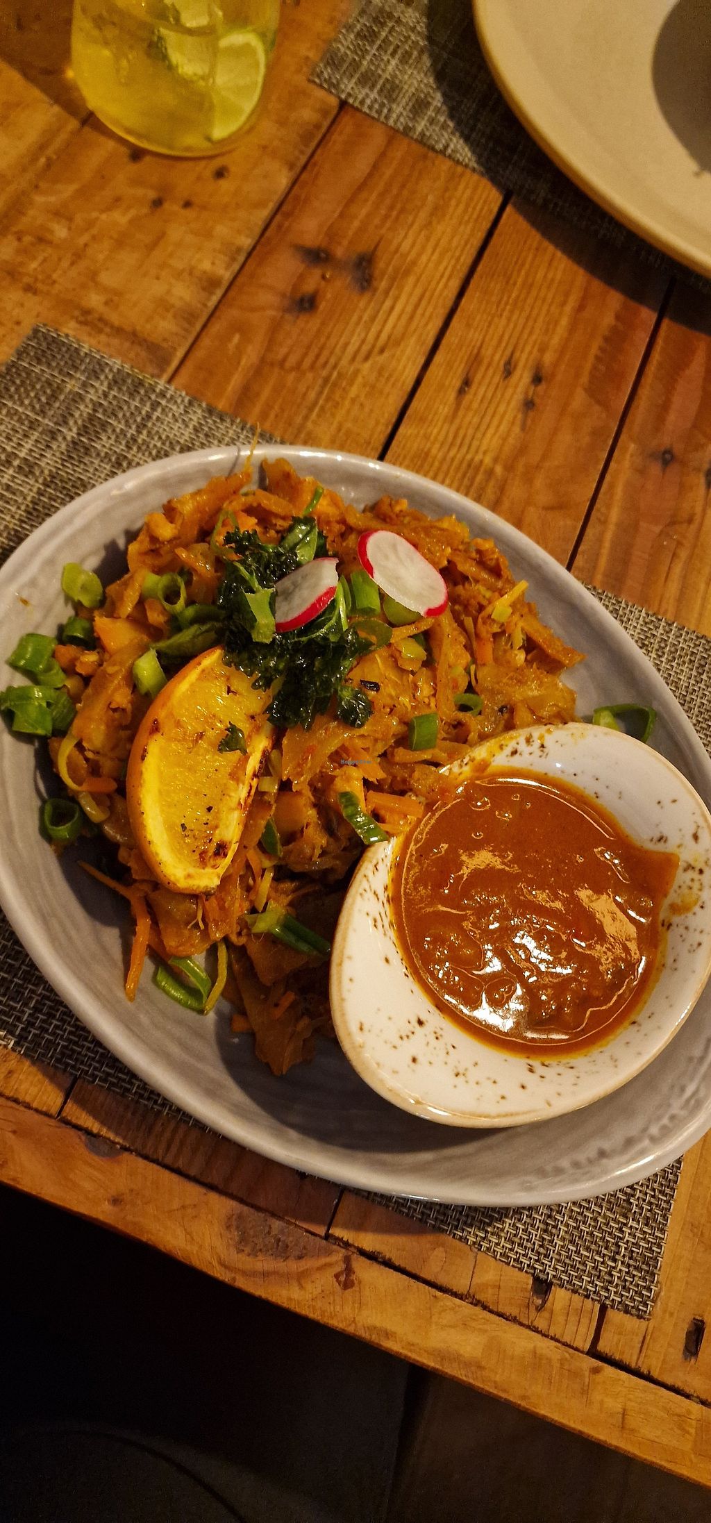 This lovely, quirky restaurant had lots of clearly labelled vegan options on the menu. The jackfruit kothtu and kanda bhaji I ordered were both delicious. The staff were very friendly and welcoming and on seeing my order the chef came out to ask if I was vegan and told me about how lots of Sri Lankan food is naturally vegan and they are very proud to have an extensive vegan offering on their menu. The food did take quite a long time to come although the restaurant was quiet, but we weren't in a rush so this wasn't an issue and perhaps an indication of everything being freshly made. Very much worth a try and great to have some vegan options that felt fresh and healthy and were a bit different from the standard vegan offerings.