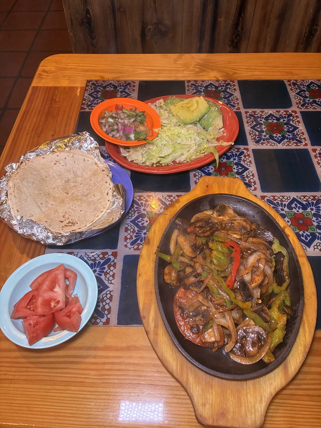 Serves meat, vegan options available. Offers vegetarian dishes that can be made vegan by request, including the garden bowl, mushroom tacos, Victoria bowl, and veggie BBQ fajitas with bell peppers, onions, and tomatoes. Open Mon-Fri 11:00am-10:00pm, Sat-Sun 11:00am-11:00pm.
