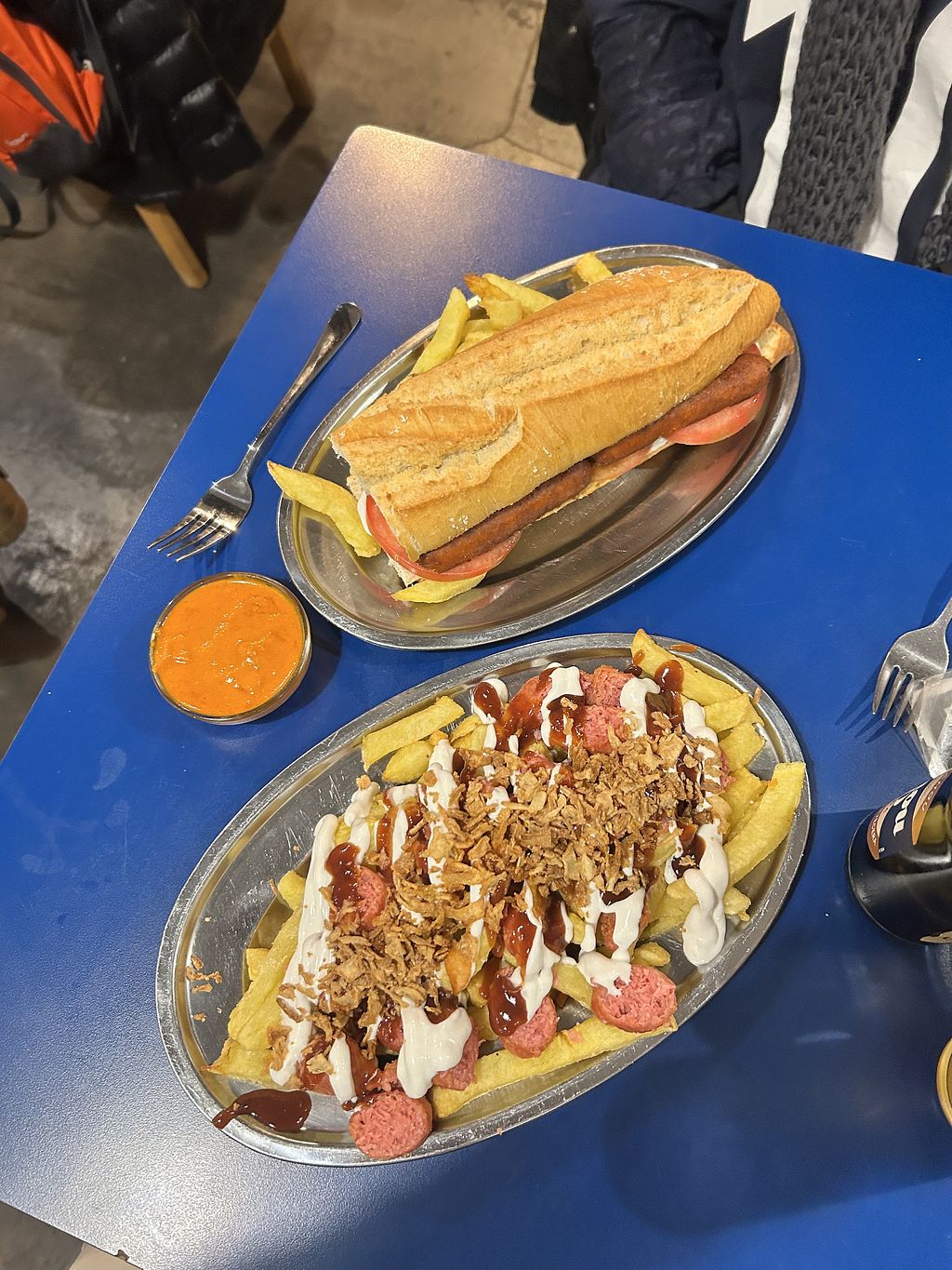 Salchipapas and onion rings