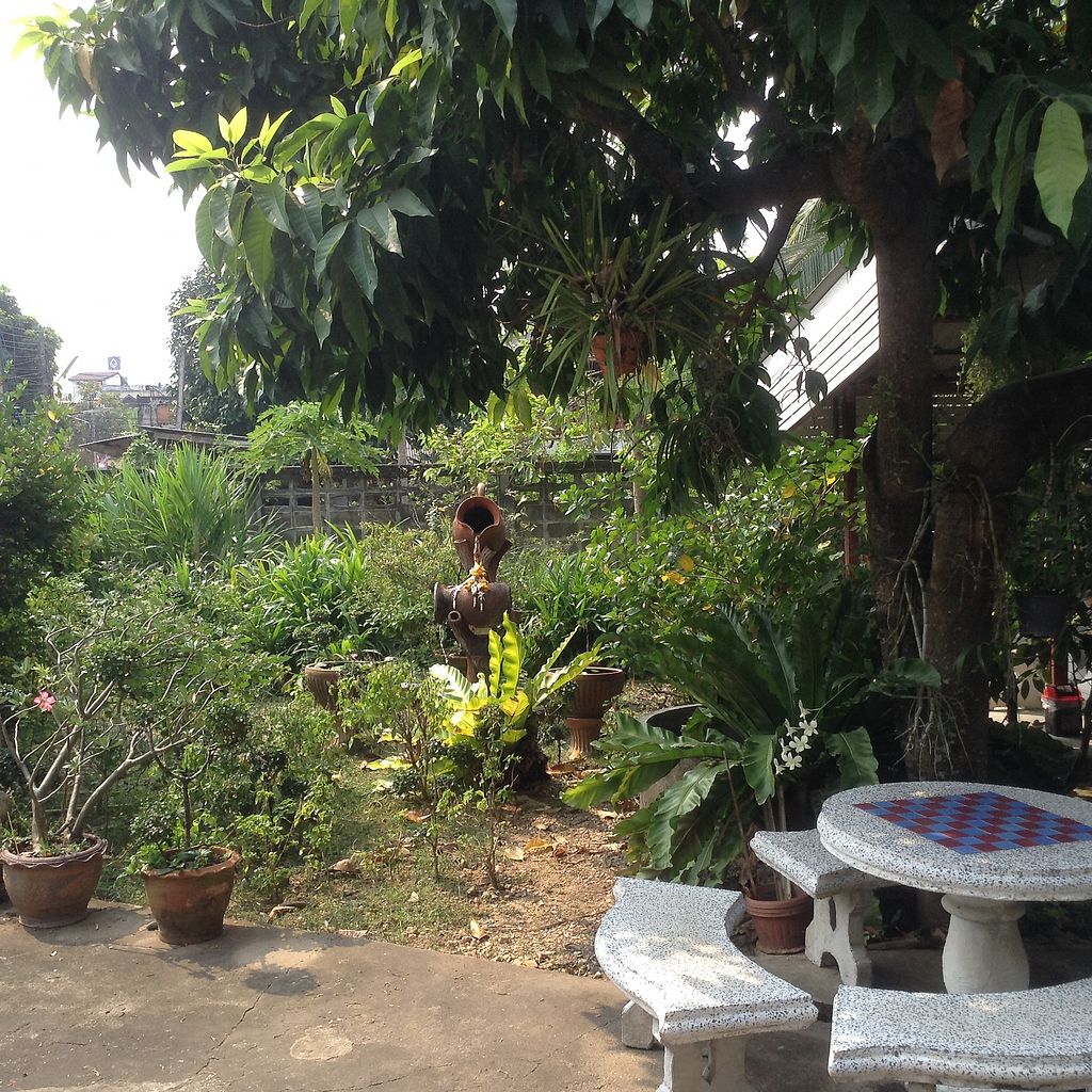 Fantastic place set in a quiet yard/garden with several shaded tables and ambient water fountains. It is located in very calm and cute little street accessible via Th. Mahayot or Th. Sumon Thewarat. The location is indicated on Google Maps and maps.me.