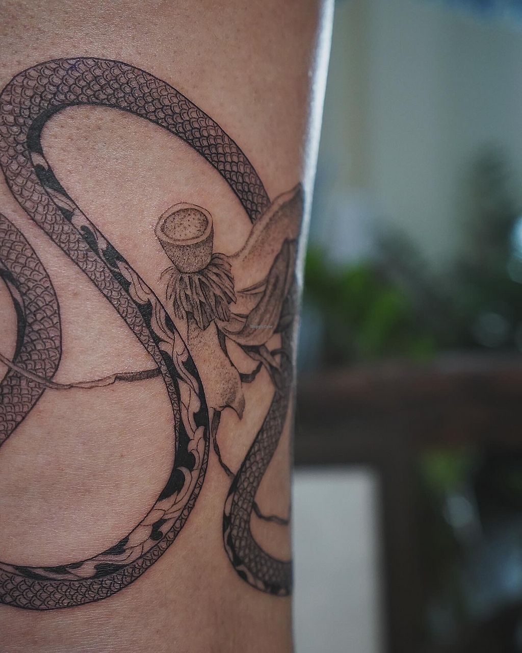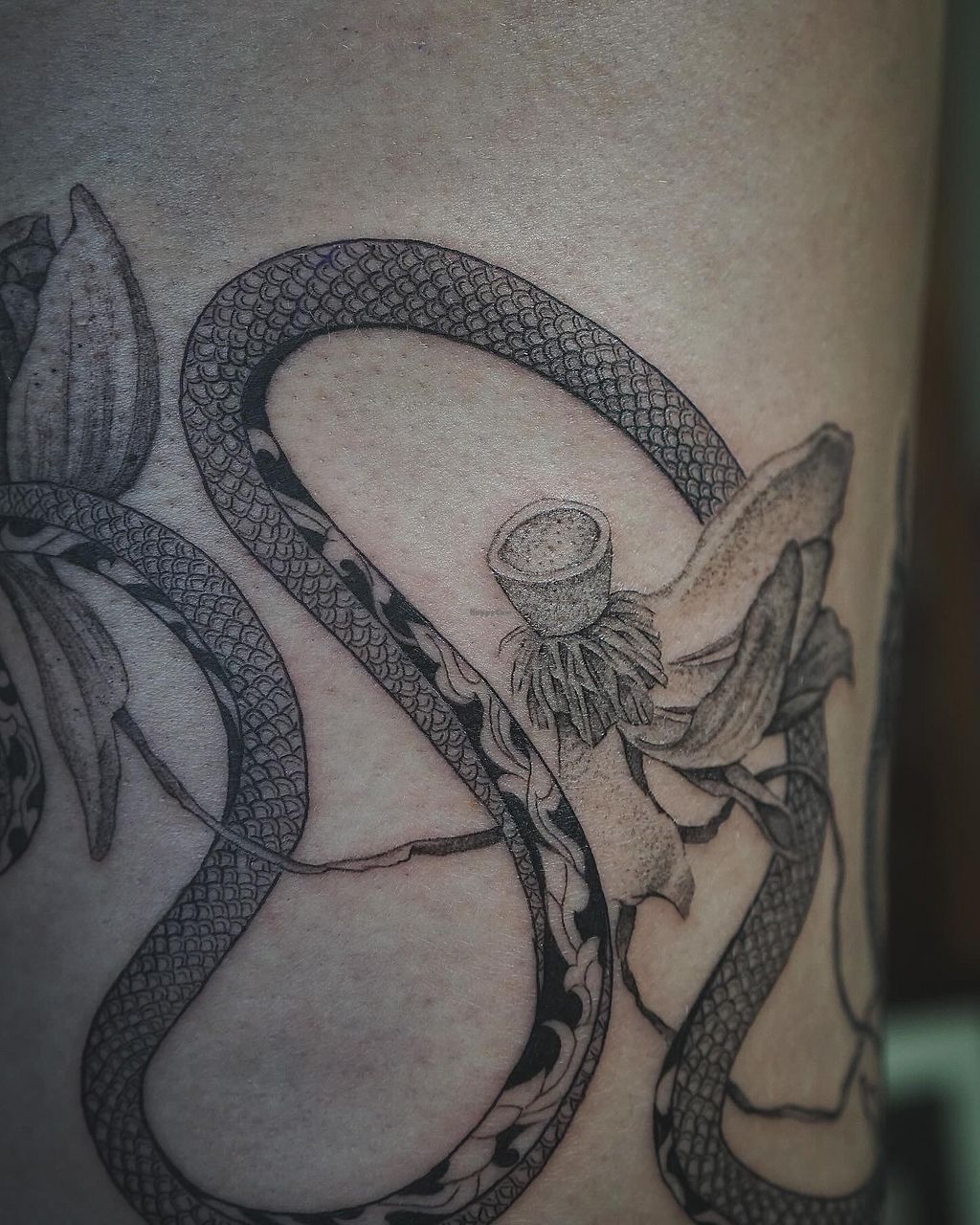 Nature and animal tattoos in the mixture of realism, abstract art and line work in Chiang Mai - Edit