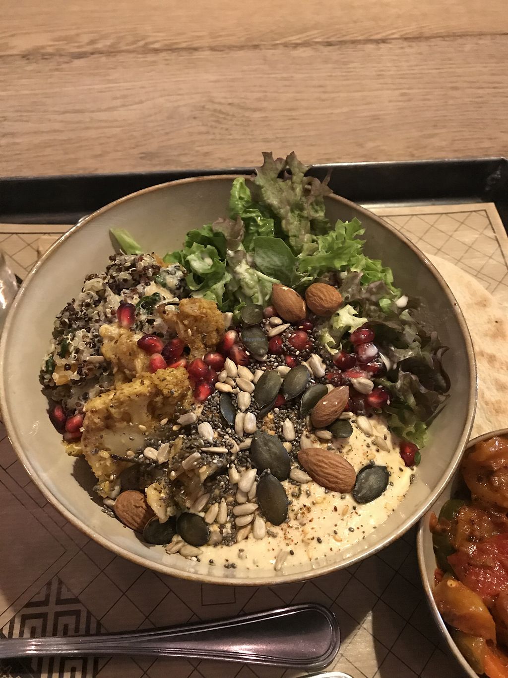 Wir hatten eine orientalische Bowl und einen veganen Döner, beides sehr gut gewesen.