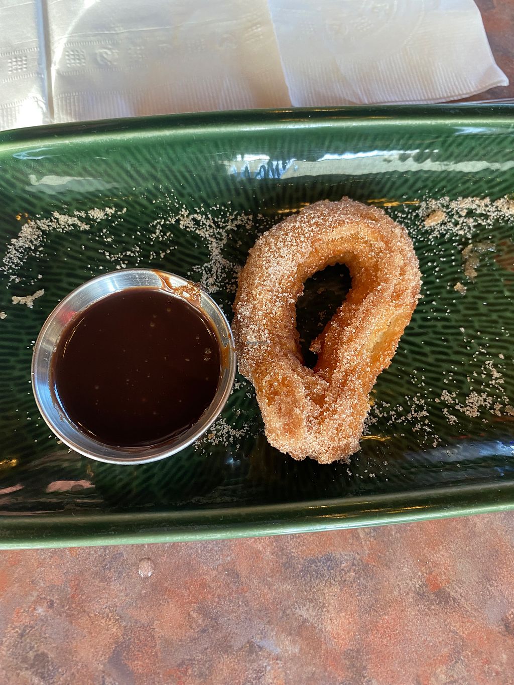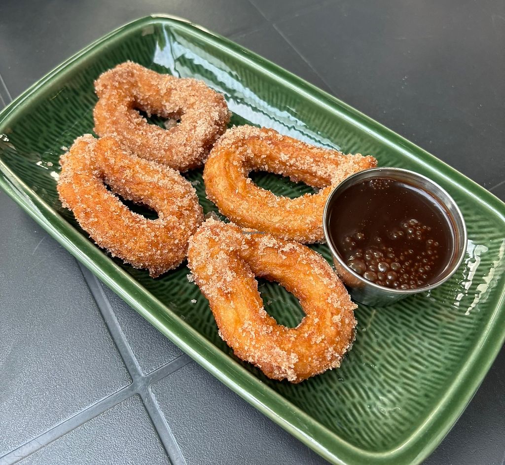 Vegan churros with chocolate sauce