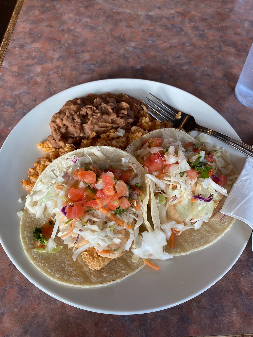 Fishless tacos with rice and beans