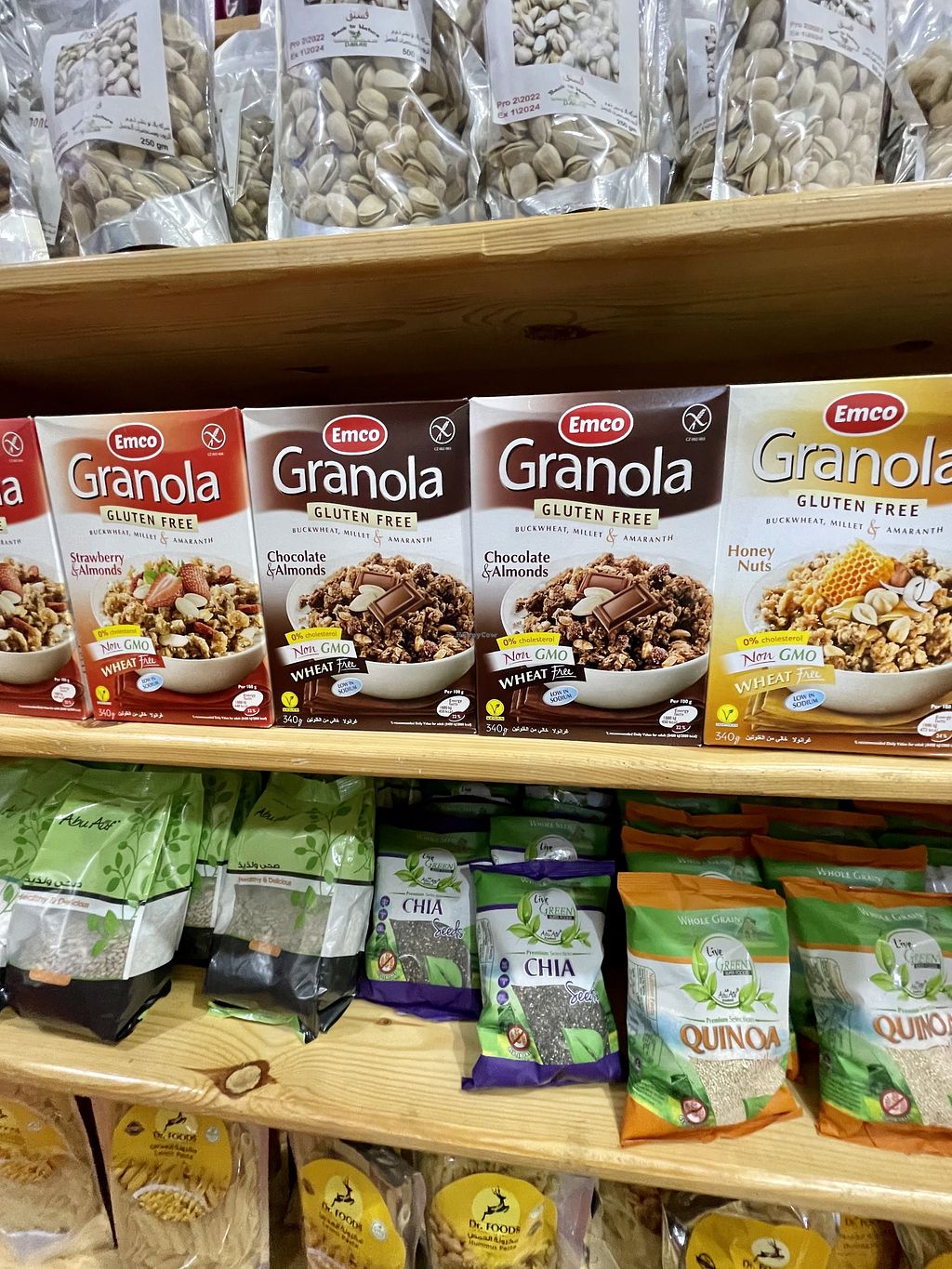 Vegan labelled granola (but the yellow one has honey)