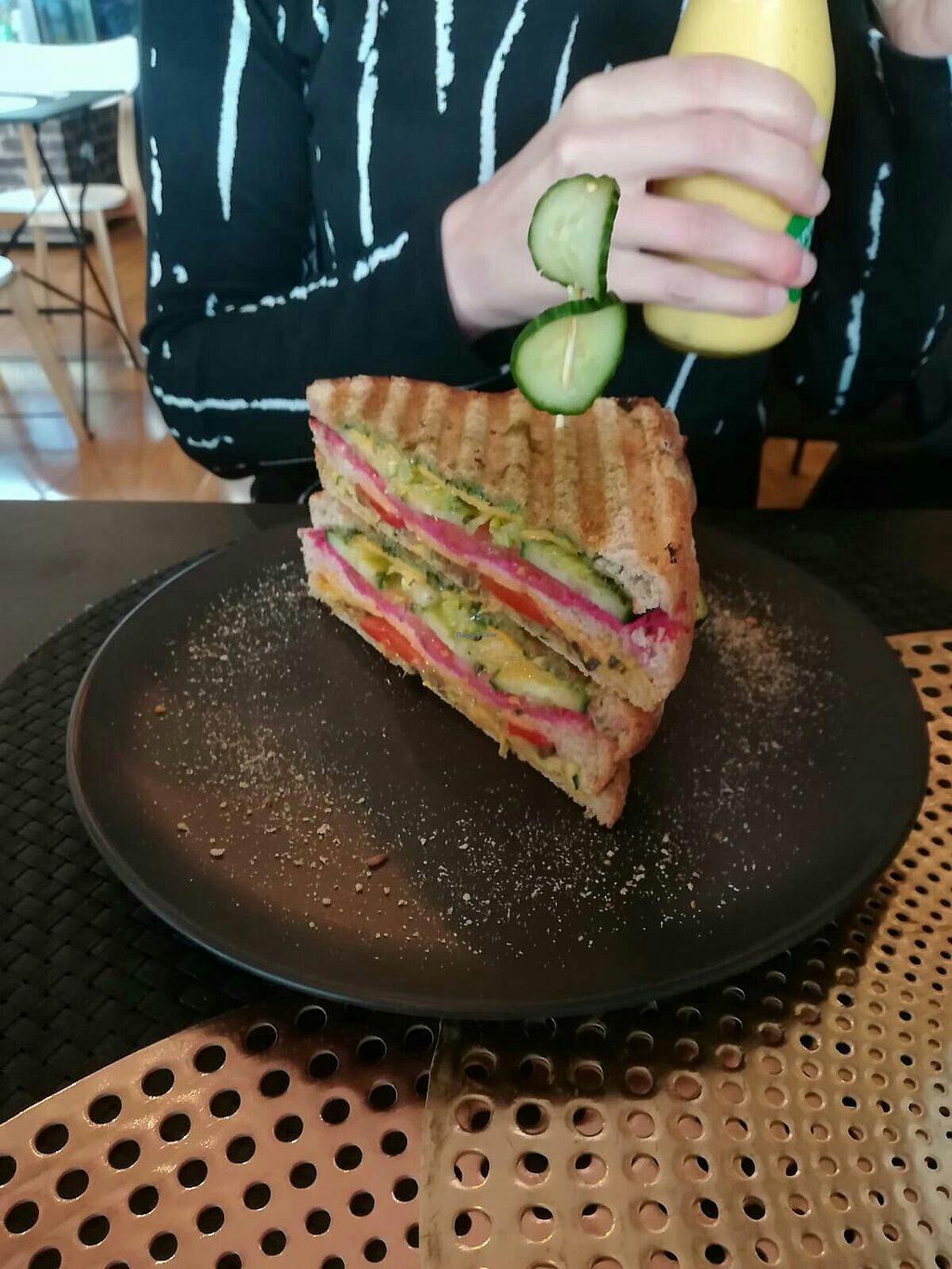 We came here for lunch. There is a range of different items such as burgers, pizzas and curries. I had the satay tofu burger and there was a lot of flavour in it. I also had a green juice which I liked. My partner had a sandwich and an Oreo milkshake. The milkshake was delicious and he enjoyed the sandwich.