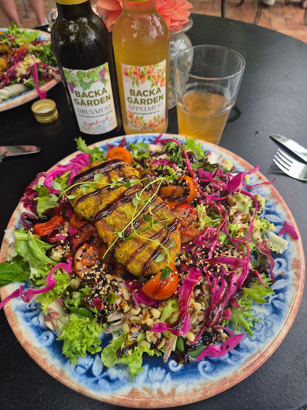 Despite being a tourist area, it's hard to find good vegan food nearby, but Backagården was an exception. I really enjoyed having yummy lunch in the beautiful greenhouse, and then dessert in the garden.