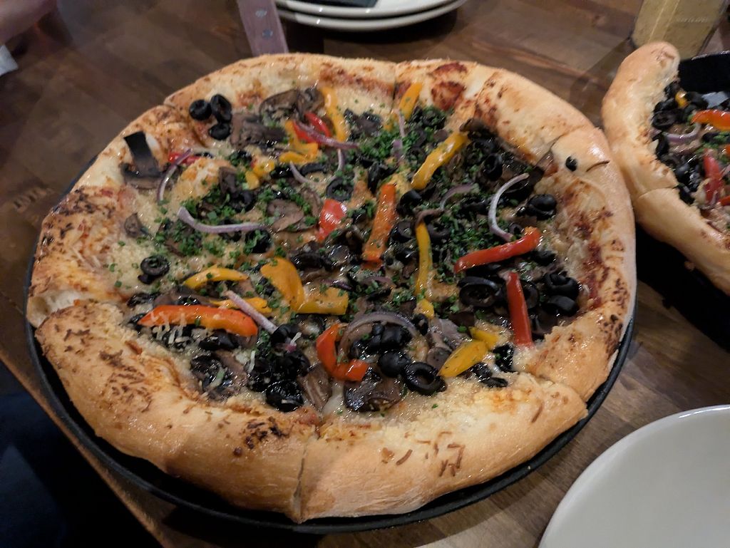 Every pizza can be “veganized” but that means using vegan cheese instead of normal cheese and removing the meat with no substitute. Ordering a vegan “Buffalo Chicken” pizza would be just the base veganized, with no buffalo or chicken. I thought the pizza was average and they need meat substitutes. A specialty vegan pizza would be nice.