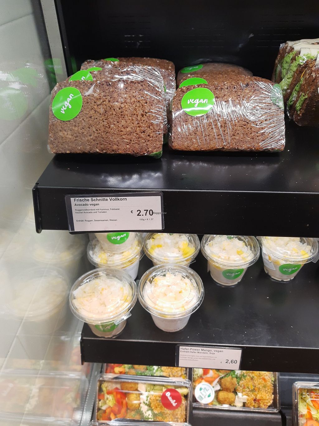 There were a few vegan options, and I was very excited! Look for the little round green stickers/signs in the store. Most of the locations in Berlin have vegan sandwiches. I noticed not so many in Frankfurt had vegan items.