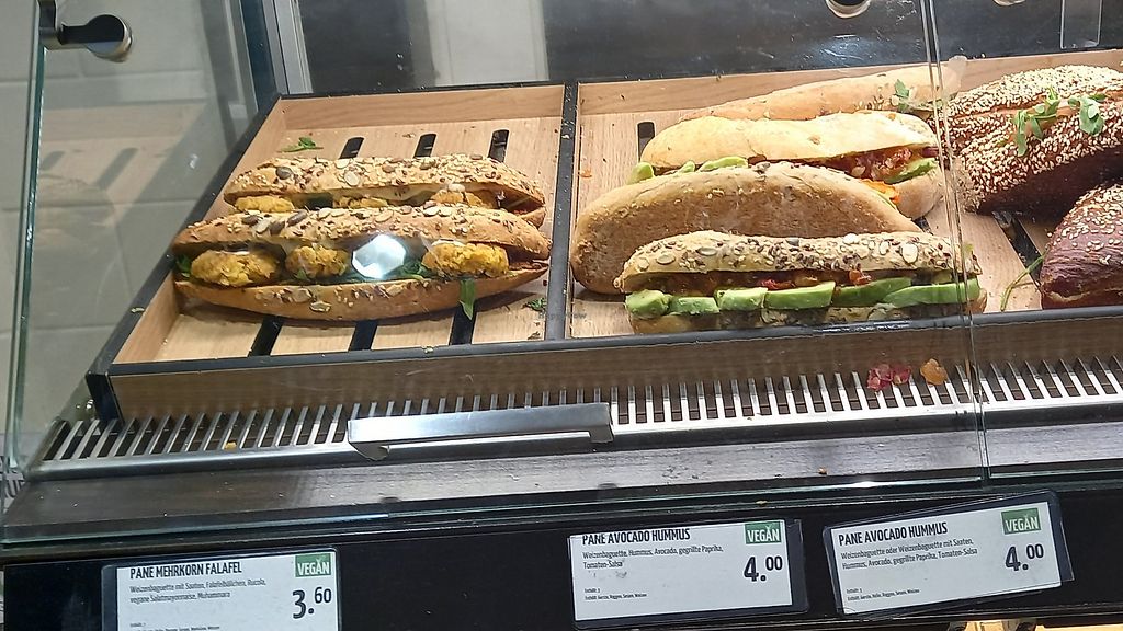 It is nice that some chains like Backwerk, Kamps, Crobag, etc. now offer vegan foods and supply german train stations (where they are ubiquitous) with vegan snacks. But only go here if you are really desperate! At Backwerk, you pay 3 EUR for half a falafel roll with german salad sauce on it. Only worth it if you have not more than 5 minutes to get your train. You are in Berlin, there is always something better around!