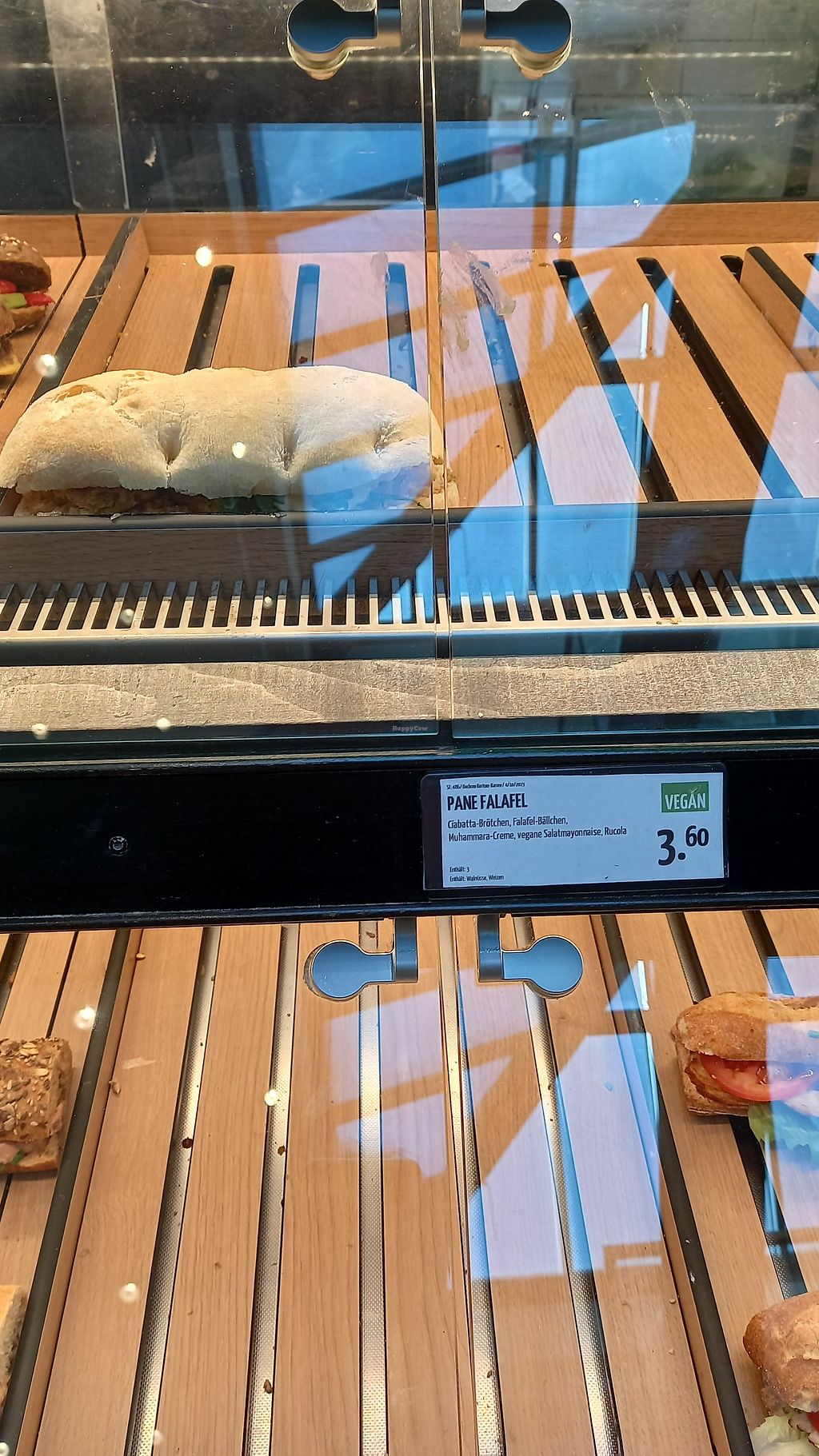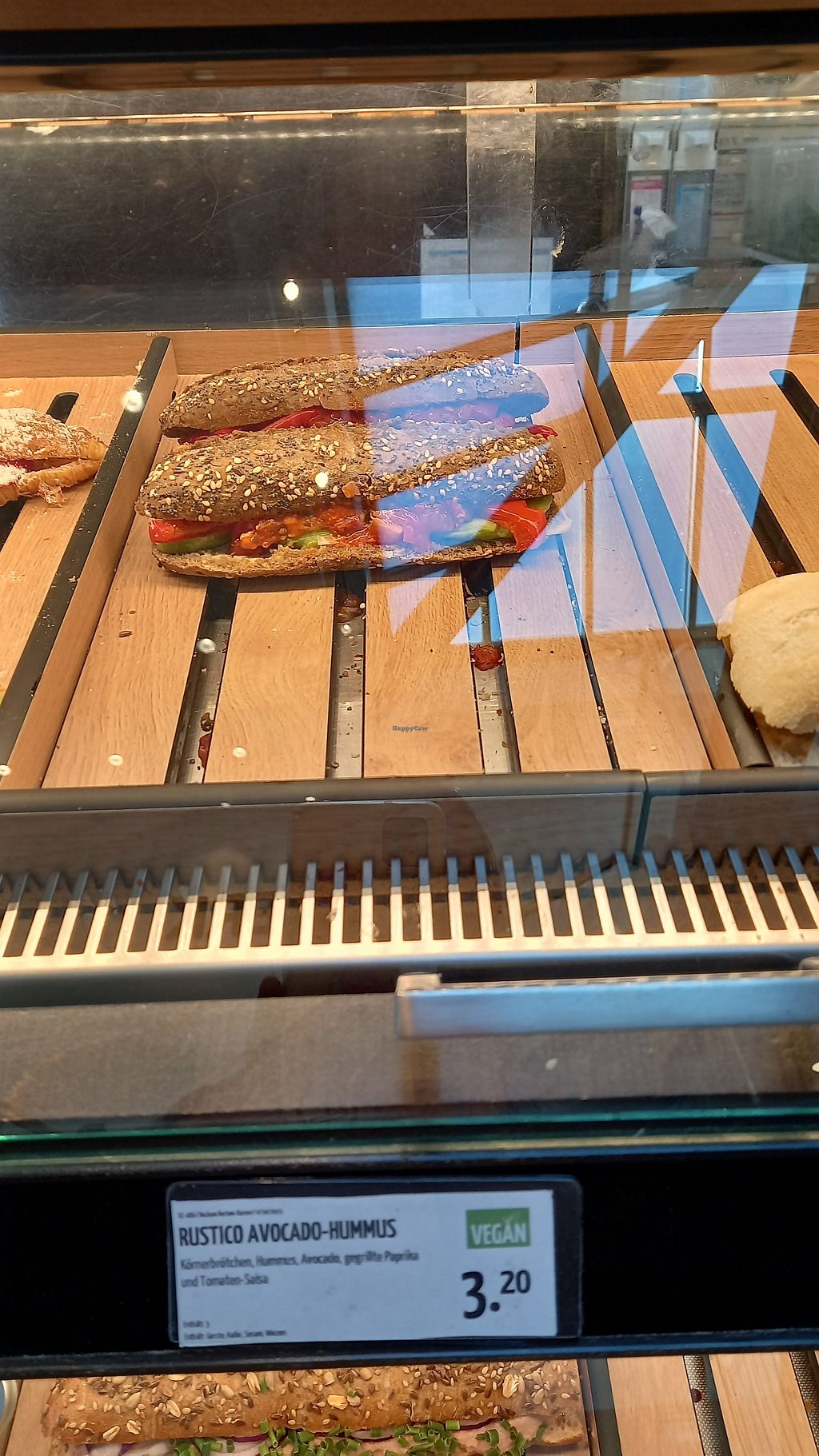 Serves meat, vegan options available. Bakery franchise offering bagels, sandwiches, salads, buns, coffee, juice, and other casual fare. Mostly grab-n-go style. Has vegan range labeled and shown on its webpage - including items like avocado sandwich, falafel wrap, vegetable schnitzel and börek (Turkish baked pastry), fruit cup, and non-dairy yogurt. Outlets are often located at train stations and some offer seating but not all (as reported to HC). Open Mon-Fri 07:00-19:30, Sat 08:00-19:00, Sun 11:00-18:00.
