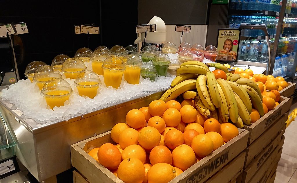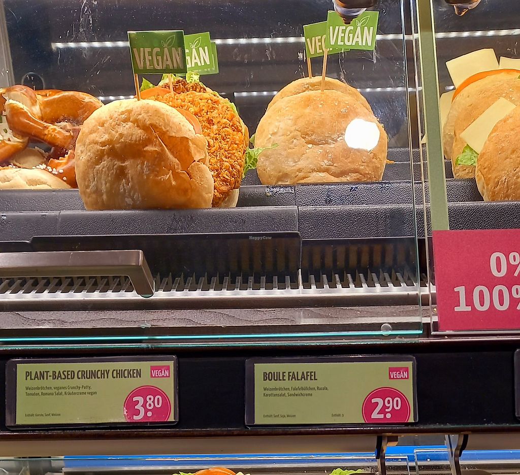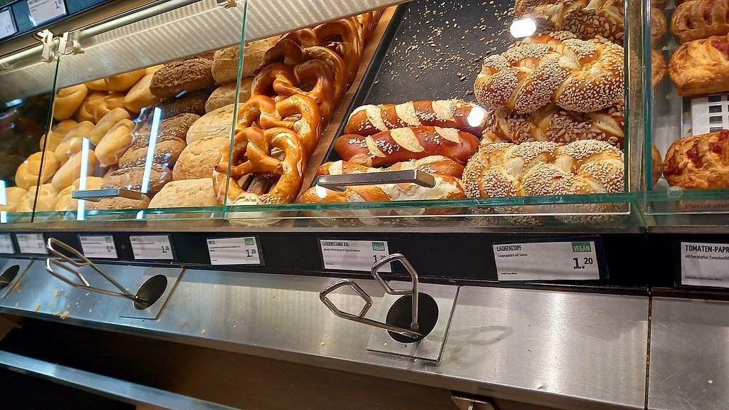 Serves meat, vegan options available. Bakery franchise offering bagels, sandwiches, salads, buns, coffee, juice, and other casual fare. Mostly grab-n-go style. Has vegan range labeled and shown on its webpage - including items like avocado sandwich, falafel wrap, vegetable schnitzel and börek (Turkish baked pastry), fruit cup, and non-dairy yogurt. Outlets are often located at train stations and some offer seating but not all (as reported to HC). Open Mon-Thu 06:30-20:00, Fri 06:30-21:00, Sat 07:30-20:30, Sun 09:00-14:00.