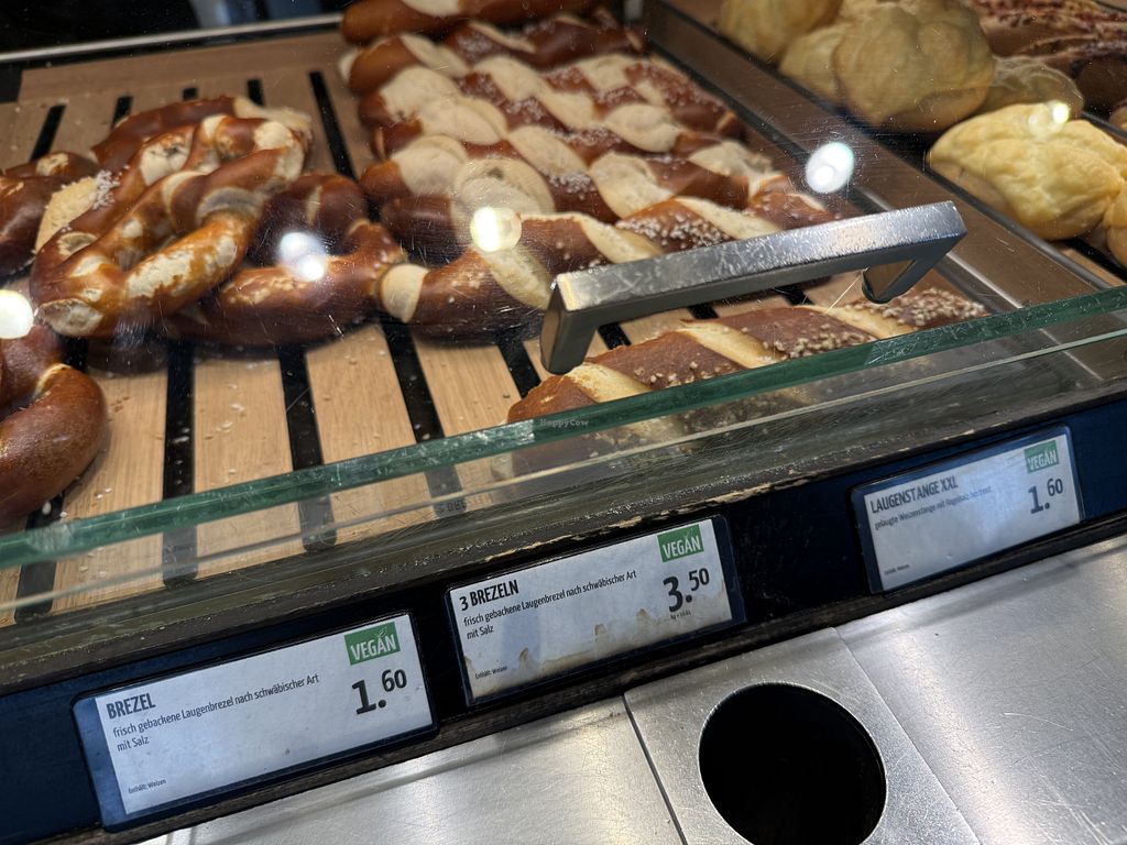 Außer normalen Brötchen und Brot gibt es in der Filiale in Siegen nur ein Falafel Brötchen und ab und zu mal vegane Kirschtaschen.