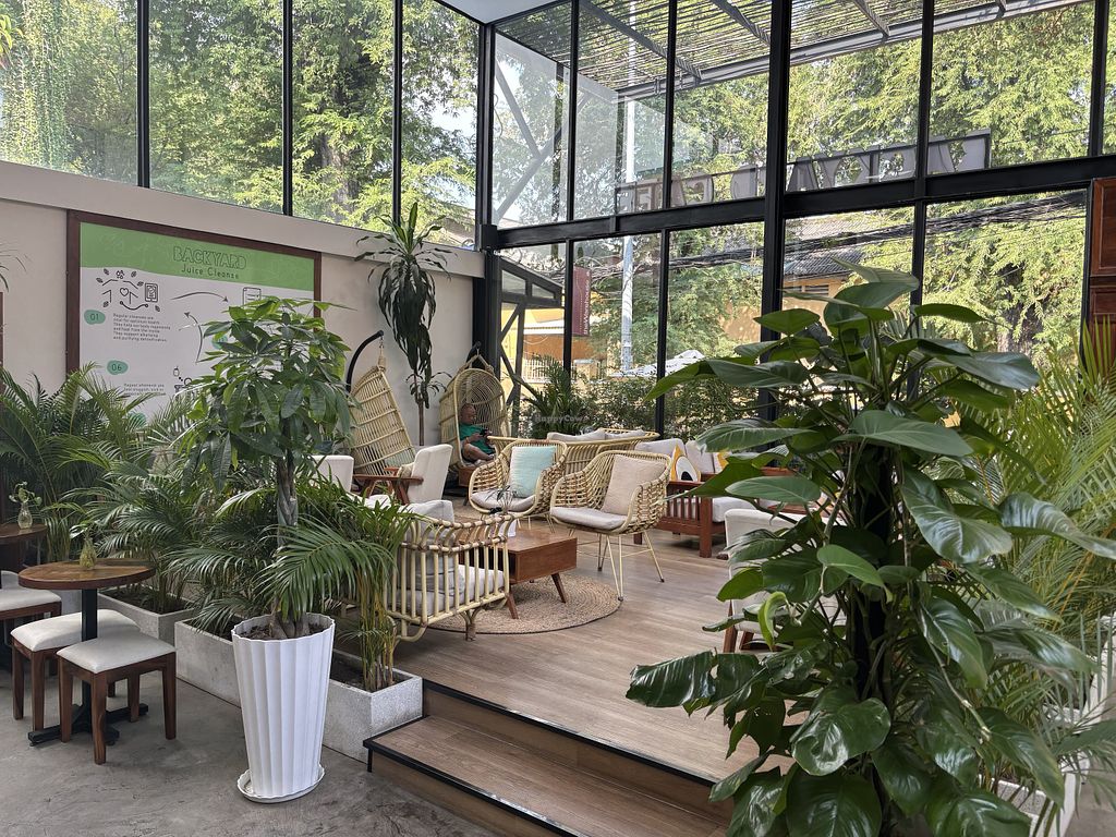 We went to the Backyard cafe for breakfast since our hotel couldn’t really offer anything vegan. It was delicious, we had a friendly and good English speaking waitress. The interior is great and a place of peace in this bustling city. We do definitely recommend this place. You can go there all day for bowls, cakes, smoothies, toasts and much more.